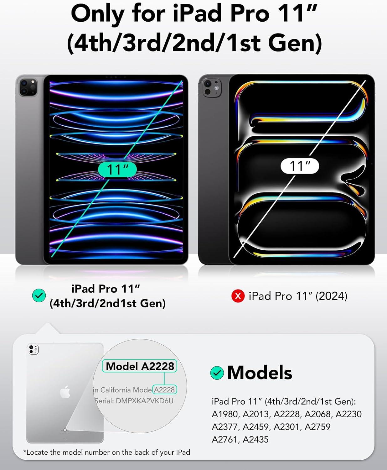 Compatibility: only compatible with iPad Pro 11ʺ (2022, 4th generation) and iPad Pro 11ʺ (2021, 3rd generation); models AXXX, AXXX, AXXX