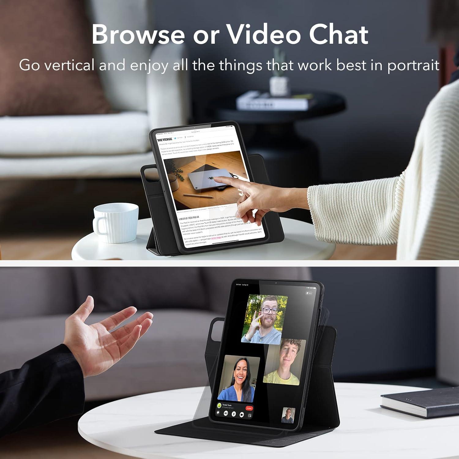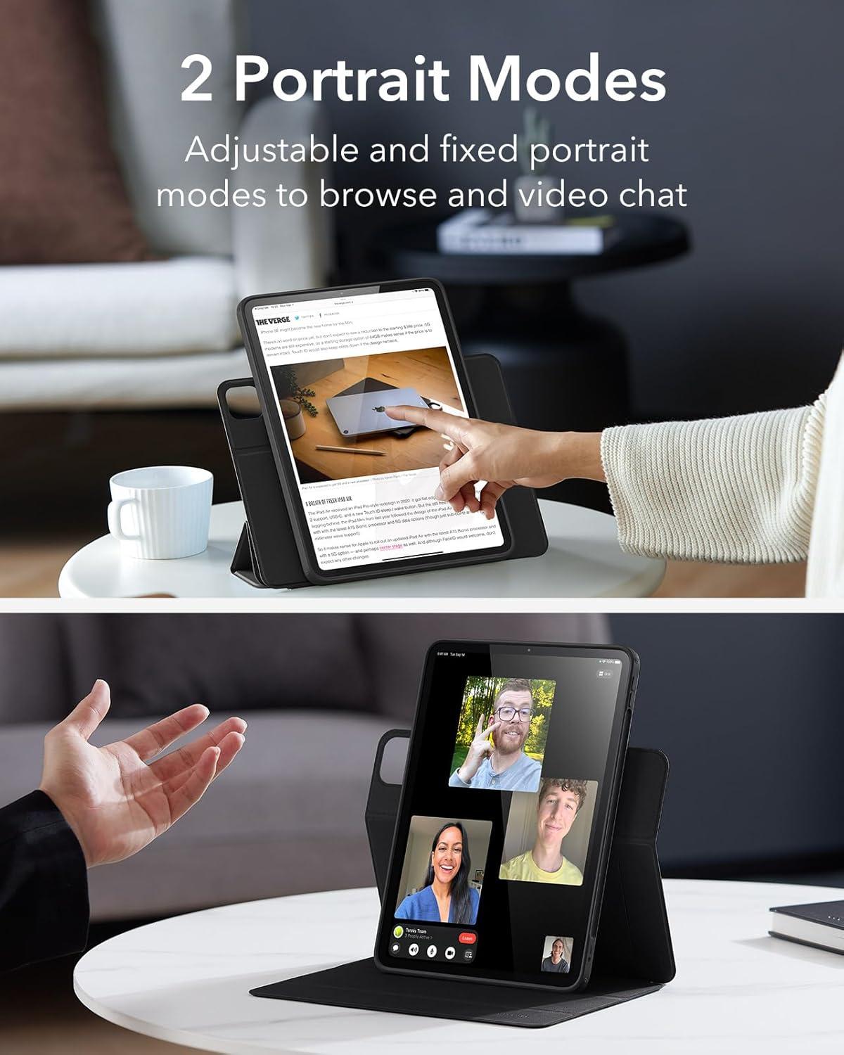 ESR for iPad Pro 11 Inch Case (M5/M4) 2025/2024, Removable Magnetic Cover, Vertical Stand, Fully Supports Pencil Pro and Pencil (USB-C), Rebound 360 Series, Pink(Black)