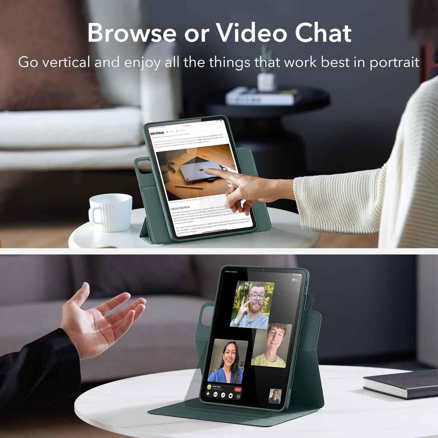 ESR for iPad Pro 11 Inch Case (M5/M4) 2025/2024, Removable Magnetic Cover, Vertical Stand, Fully Supports Pencil Pro and Pencil (USB-C), Rebound 360 Series, Pink(Green)