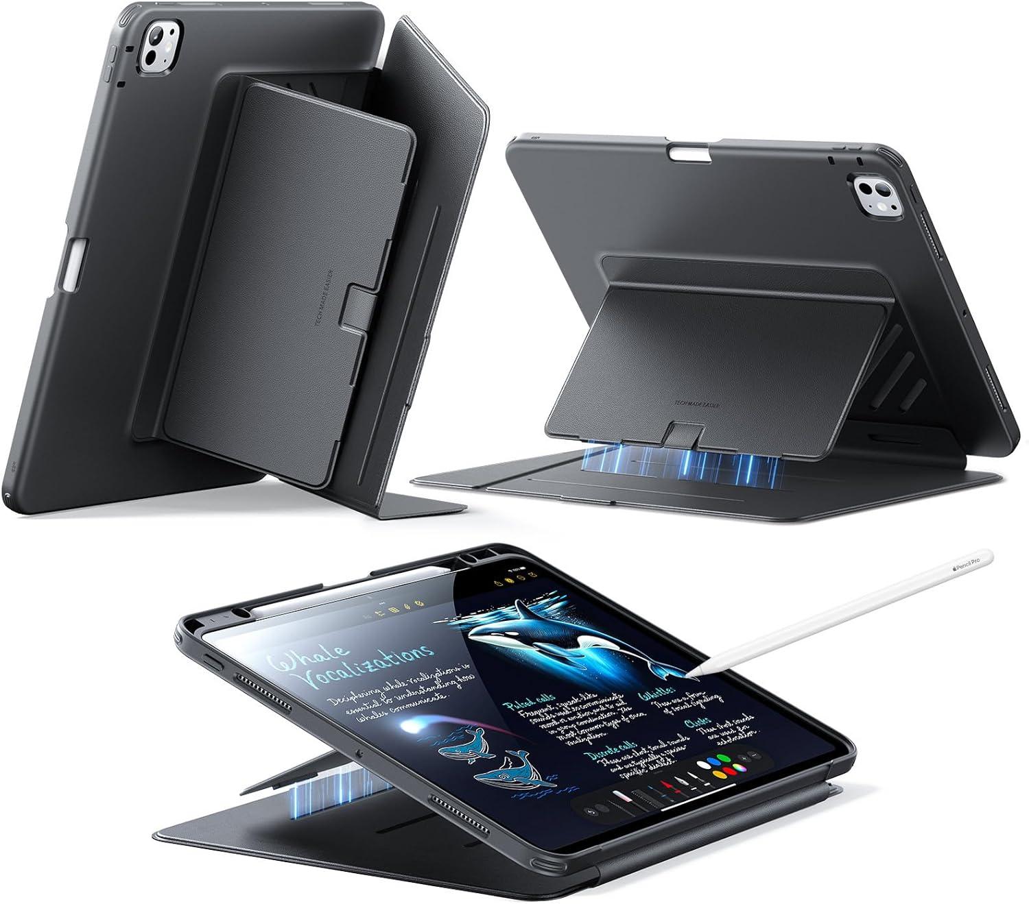 ESR for iPad Pro 11 Inch Case (M5/M4) 2025/2024, Vertical Stand Cover, Multi Stand Angles, Ultra-Stable Case with Pencil Holder, Flip Series, Black(Black)