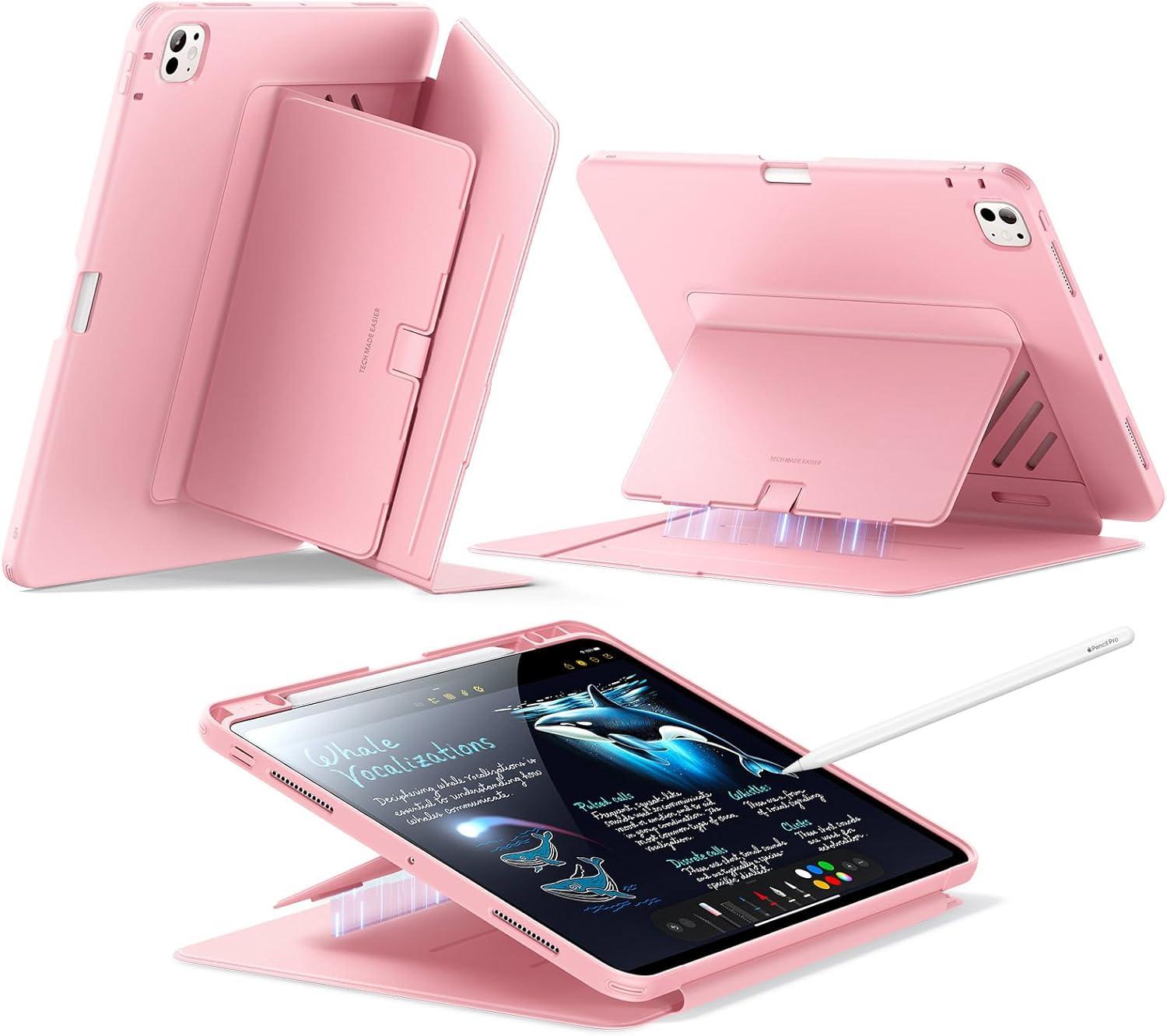 ESR for iPad Pro 11 Inch Case (M5/M4) 2025/2024, Vertical Stand Cover, Multi Stand Angles, Ultra-Stable Case with Pencil Holder, Flip Series, Black(Pink)