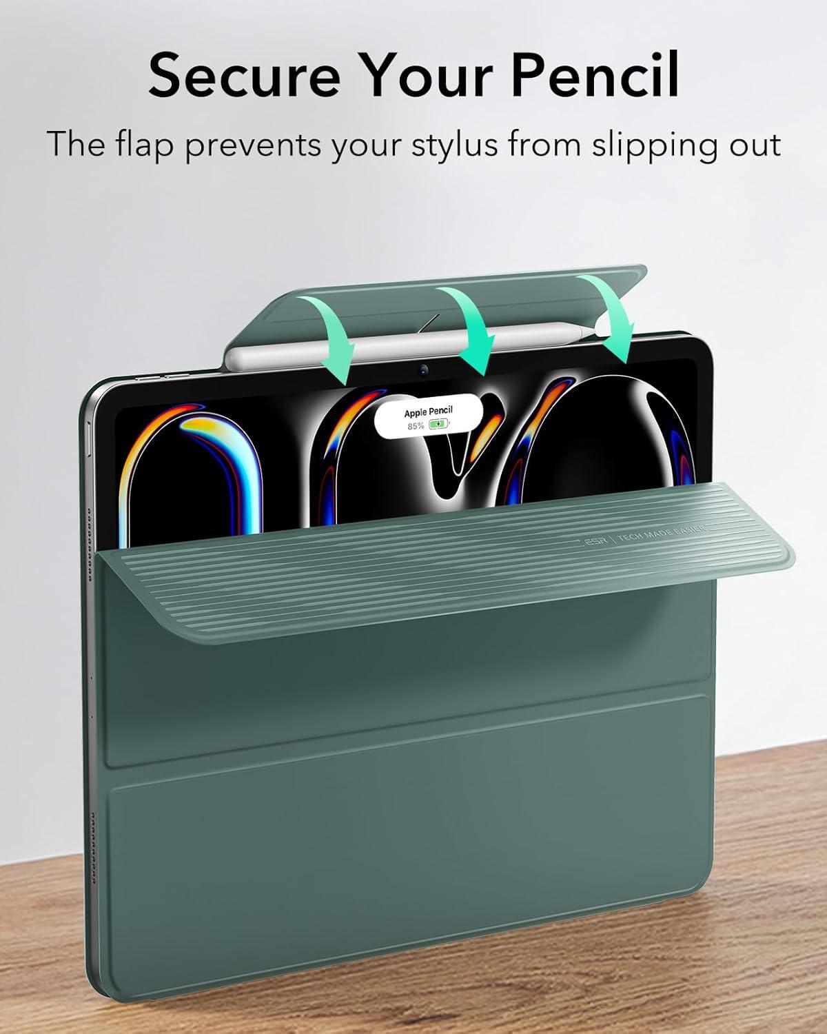 ESR for iPad Pro 13 Inch Case (M5/M4) 2025/2024, Powerful Magnetic Attachment, Slim Trifold Stand Case, Supports Pencil Pro & Pencil(USB-C), Auto Wake/Sleep, Durable Protection, Rebound Series, Black(Green)