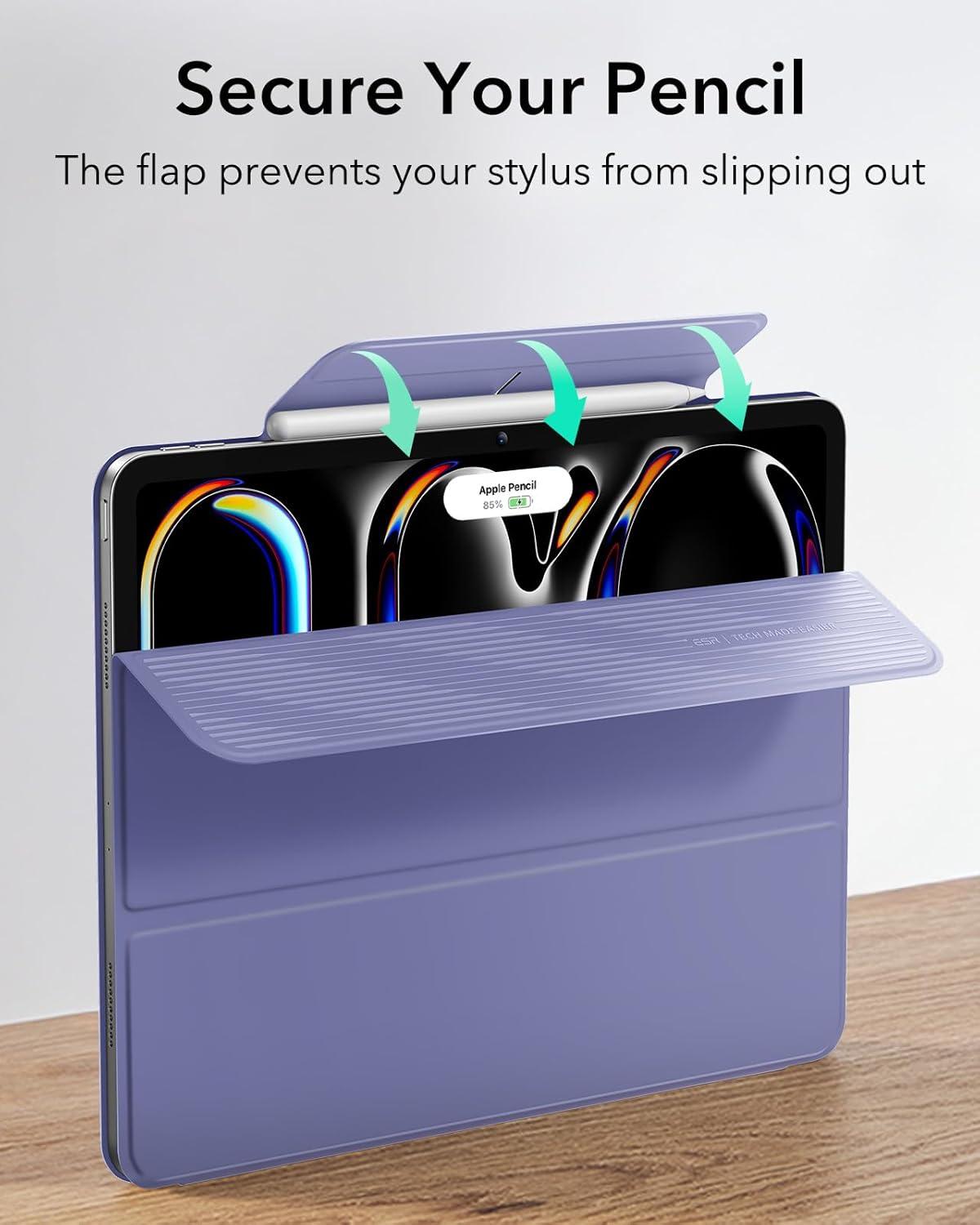 ESR for iPad Pro 13 Inch Case (M5/M4) 2025/2024, Powerful Magnetic Attachment, Slim Trifold Stand Case, Supports Pencil Pro & Pencil(USB-C), Auto Wake/Sleep, Durable Protection, Rebound Series, Black(Lavender)