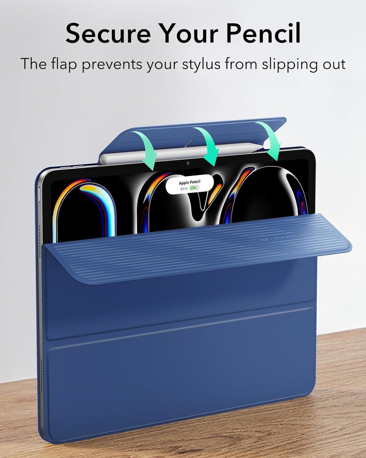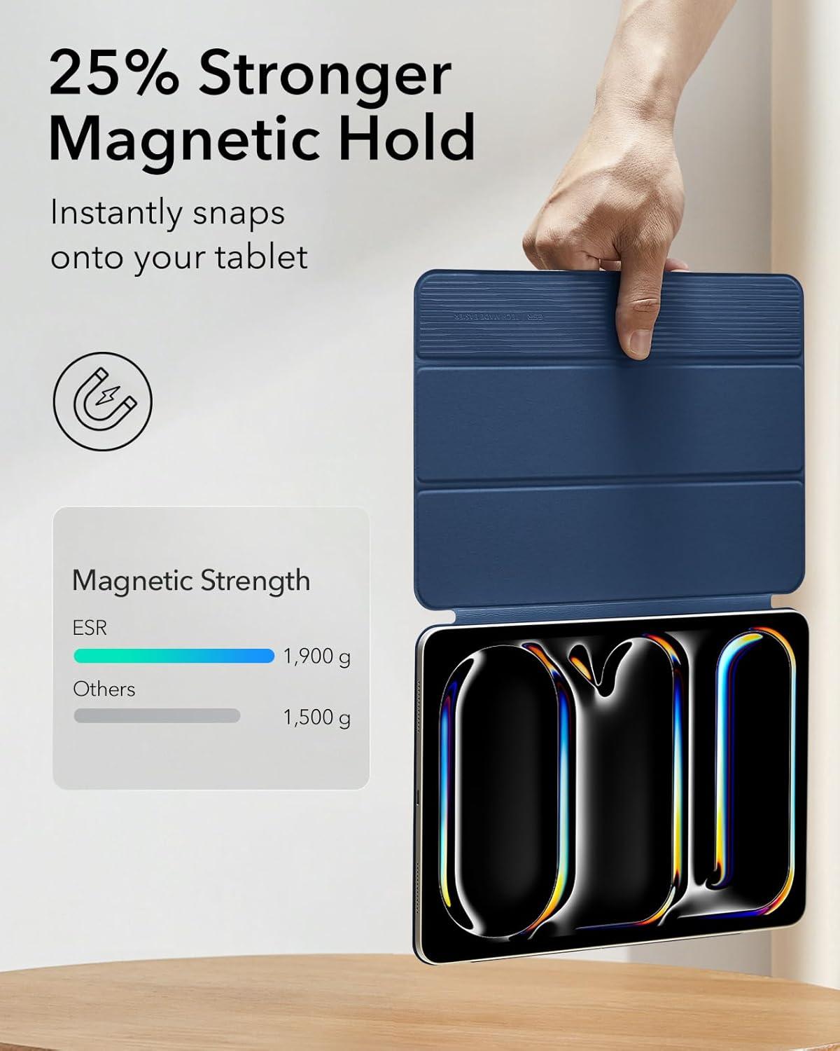 ESR for iPad Pro 13 Inch Case (M5/M4) 2025/2024, Powerful Magnetic Attachment, Slim Trifold Stand Case, Supports Pencil Pro & Pencil(USB-C), Auto Wake/Sleep, Durable Protection, Rebound Series, Black(Navy Blue)