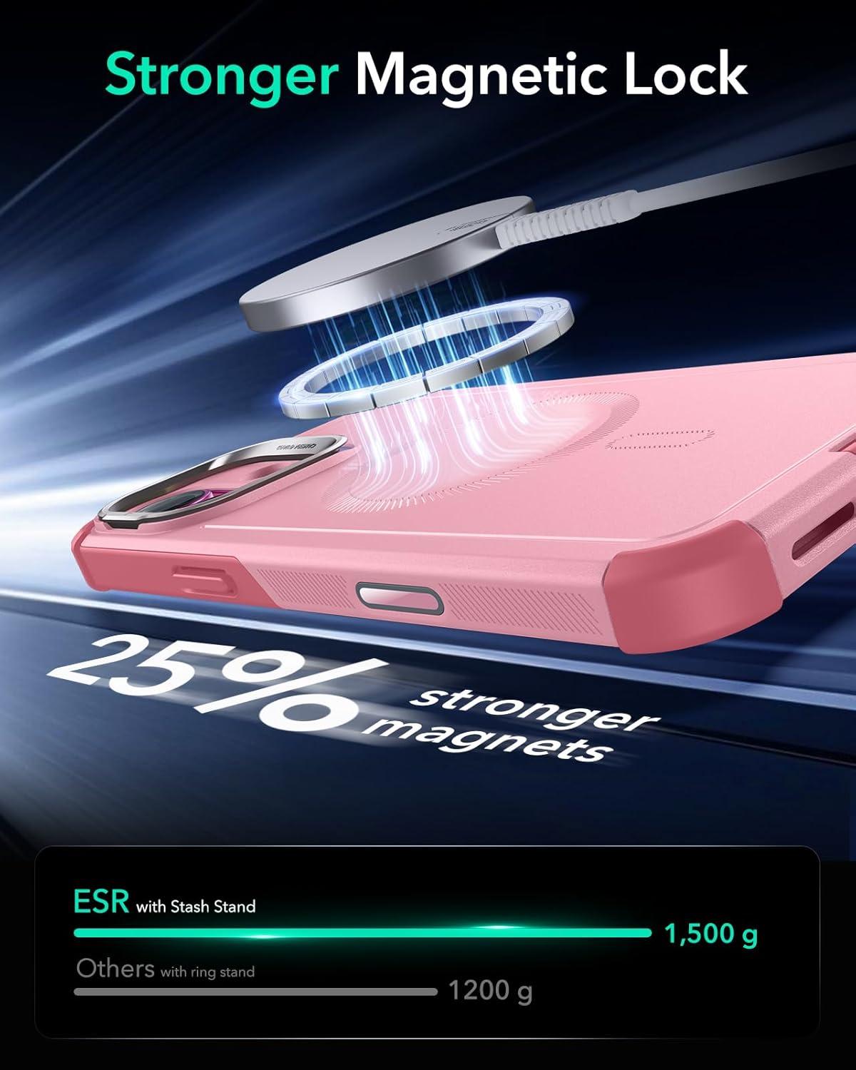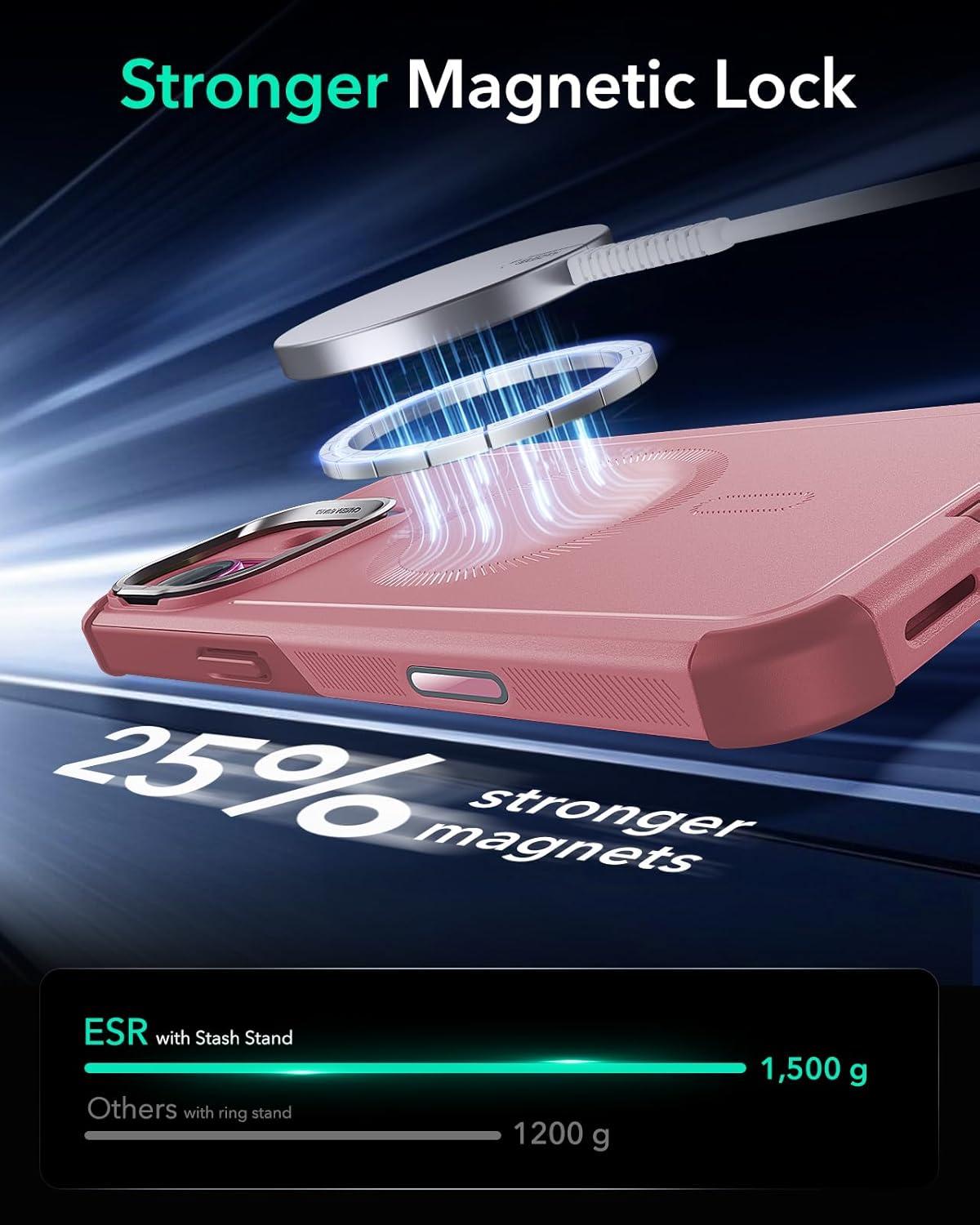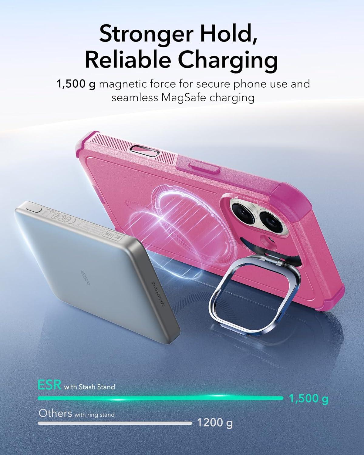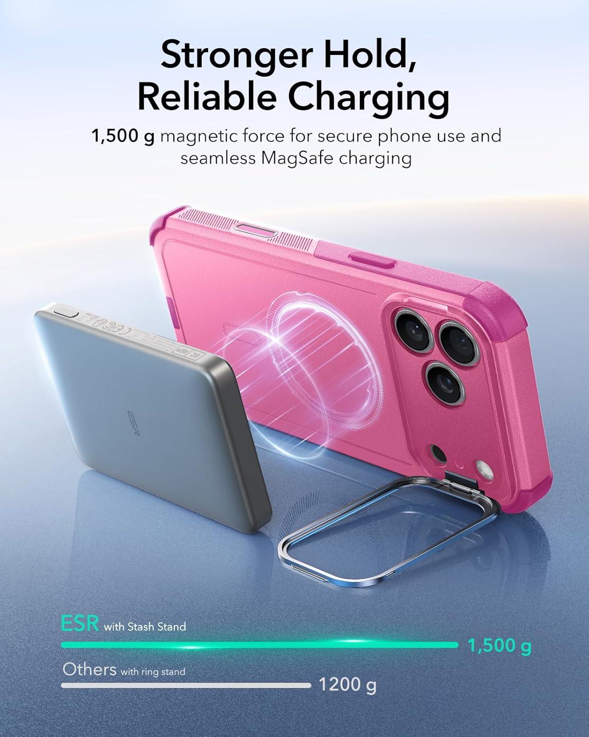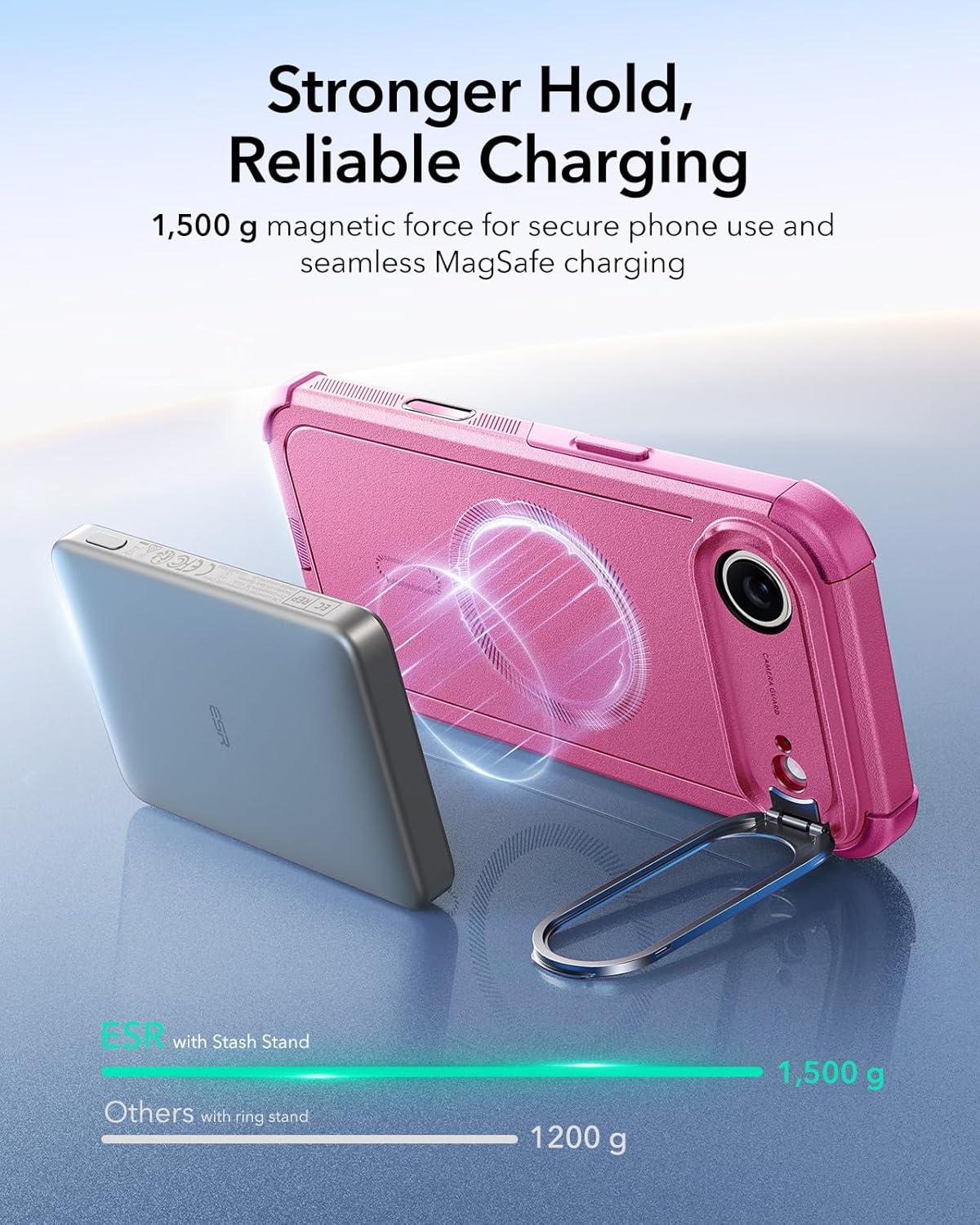 Stronger Magnetic Lock: powerful ring of magnets with 1,500 g of holding force enables faster, easier place-and-go wireless charging and a secure lock on any MagSafe accessory