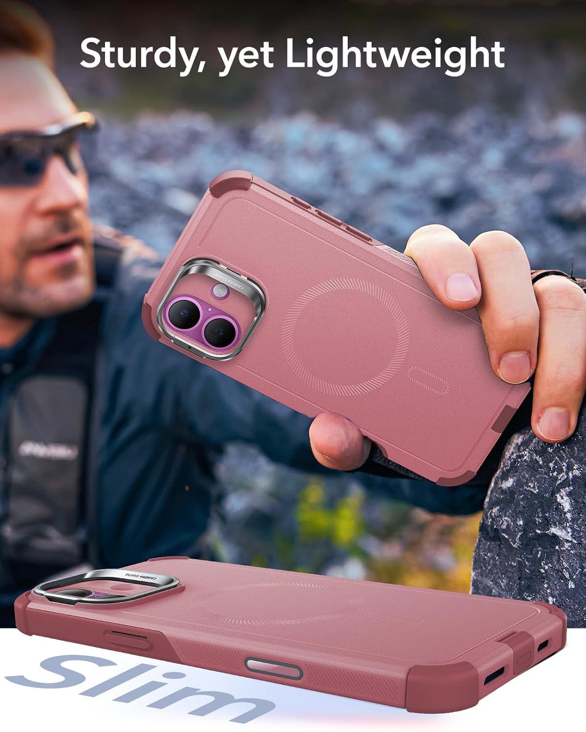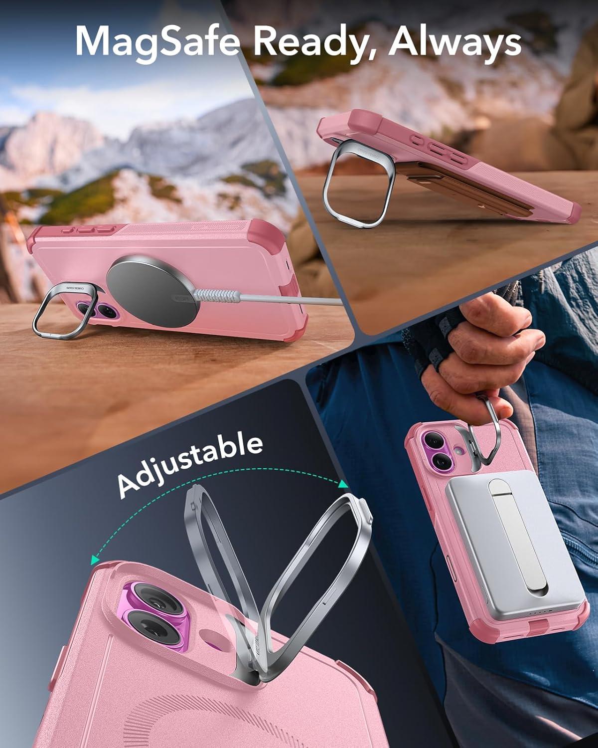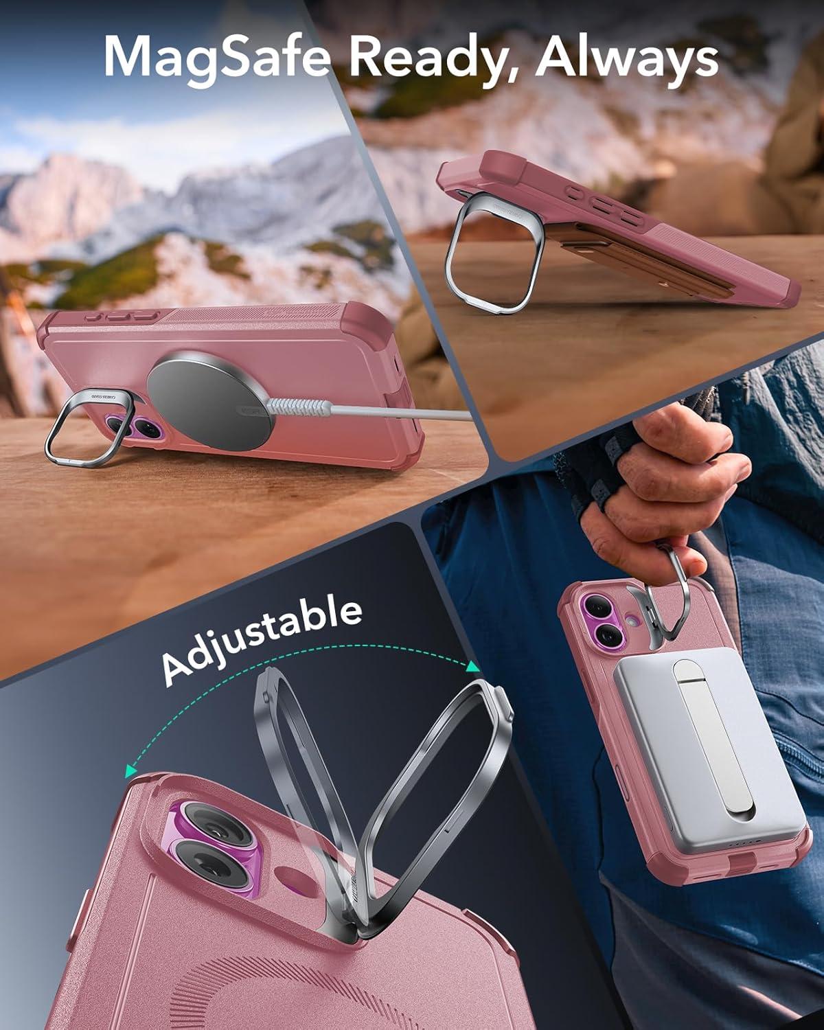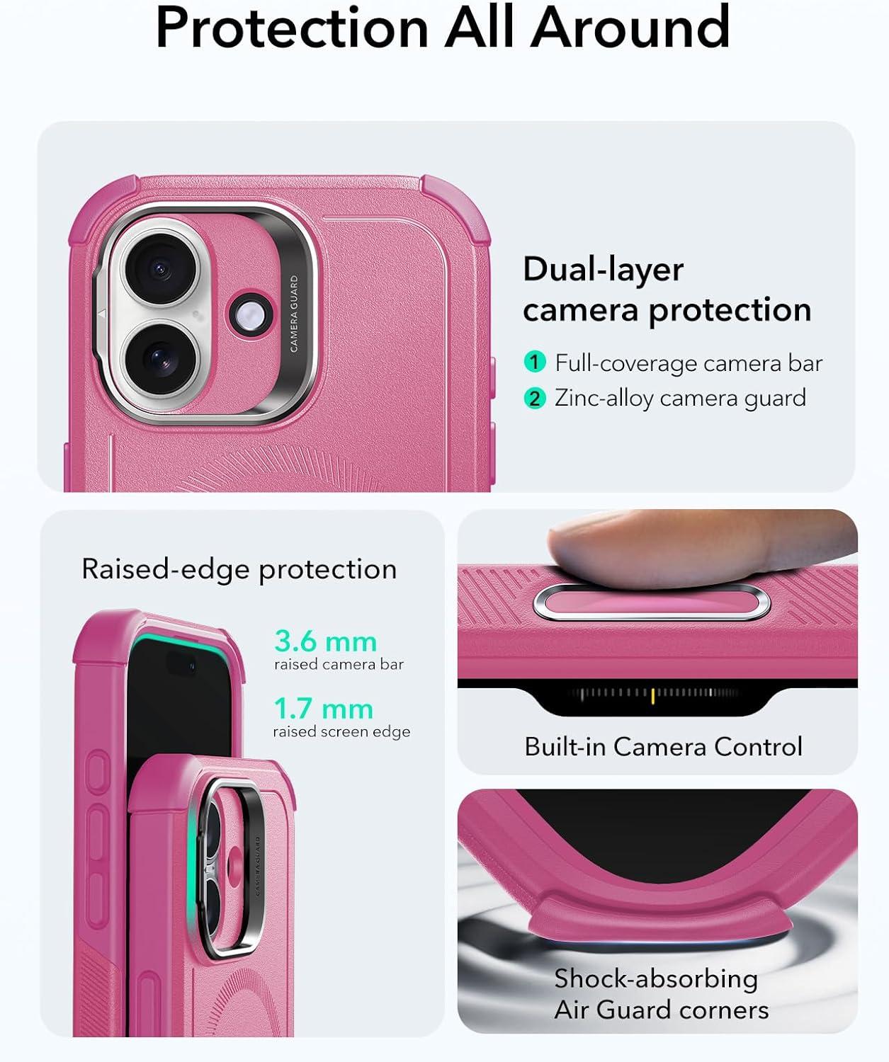 ESR for iPhone 13 Pro Case with Stand, 23 ft Military-Grade Drop Protection Heavy Duty Magnetic Phone Case, Compatible with MagSafe Accessories, Cyber Series, Black(A-Camera Control-Pink)