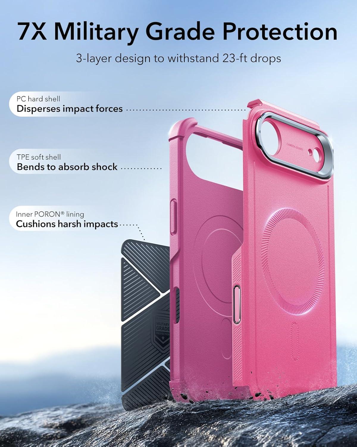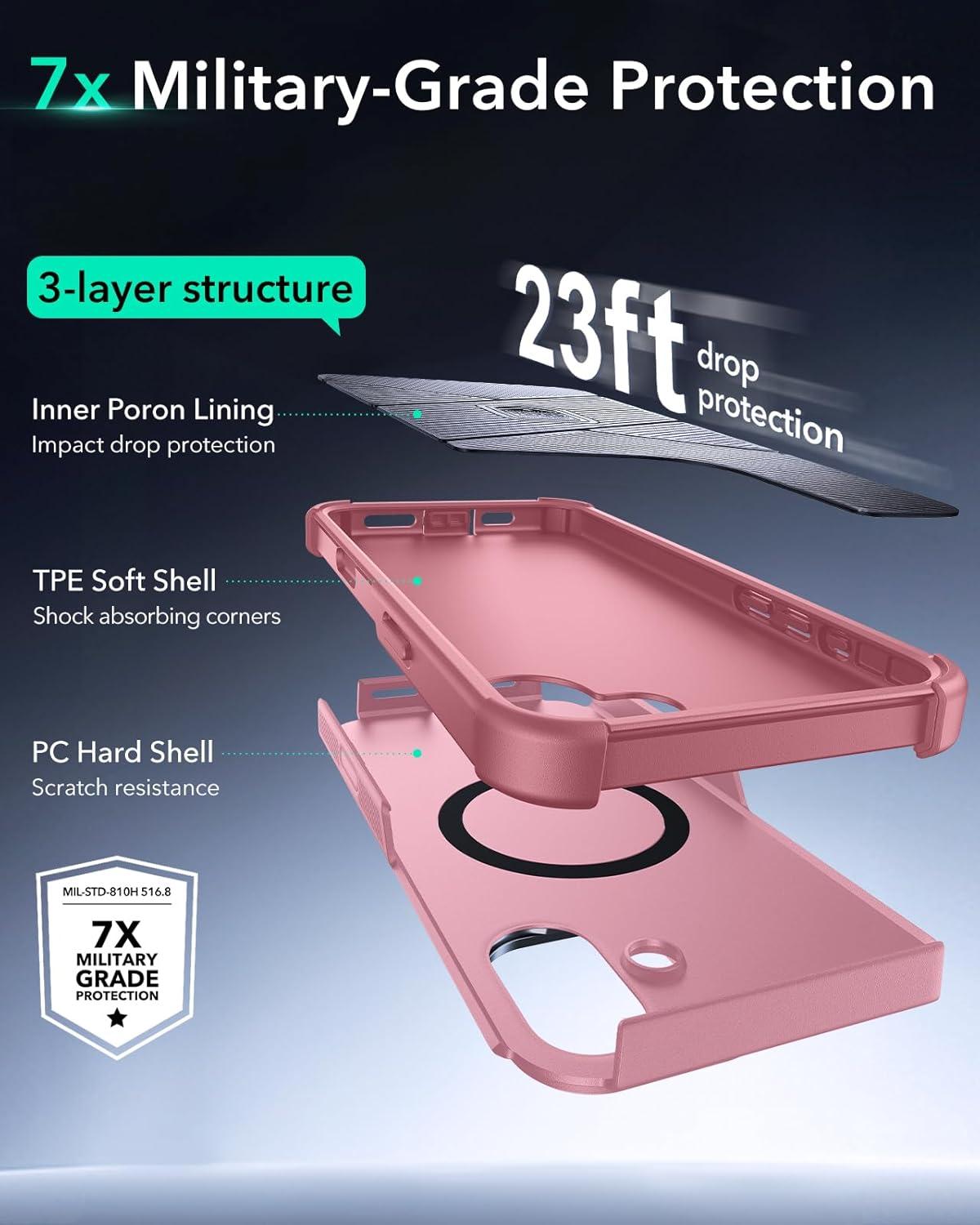 Drop-Proof Protection: 3-layer structure with a hard TPE and PC outer shell resists impacts and scratches, while the soft inner shell absorbs shocks, providing extra cushioning to protect against drops up to 23 ft