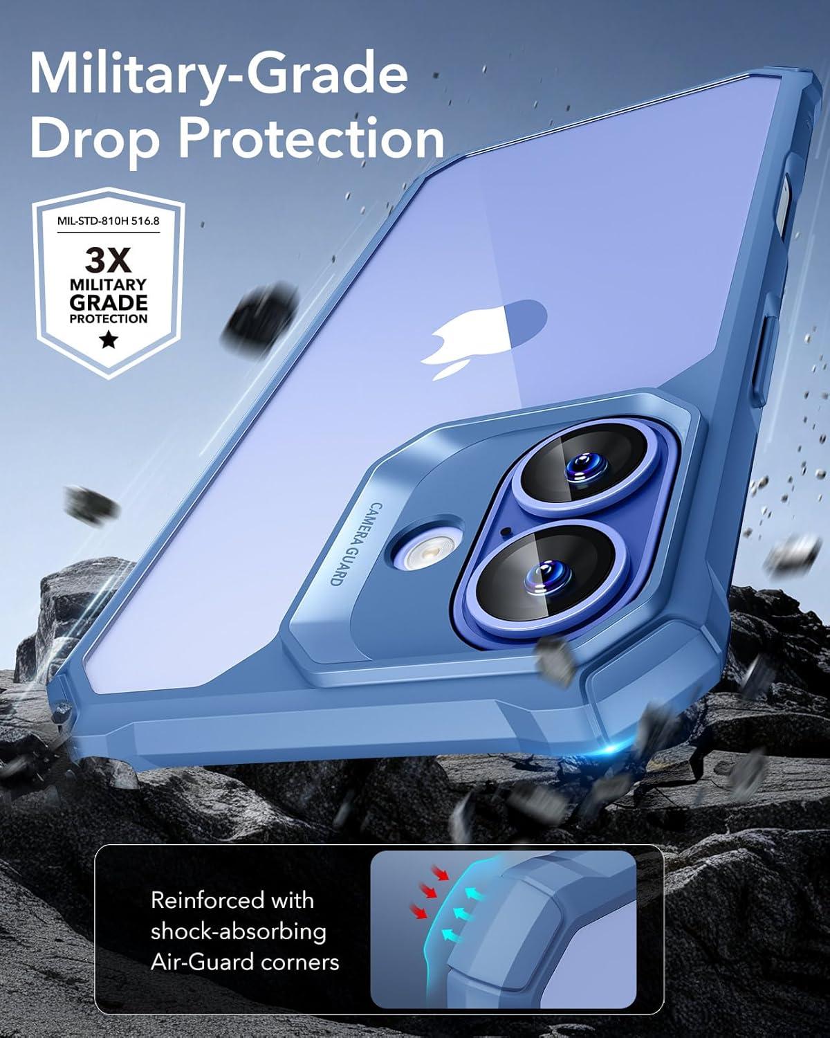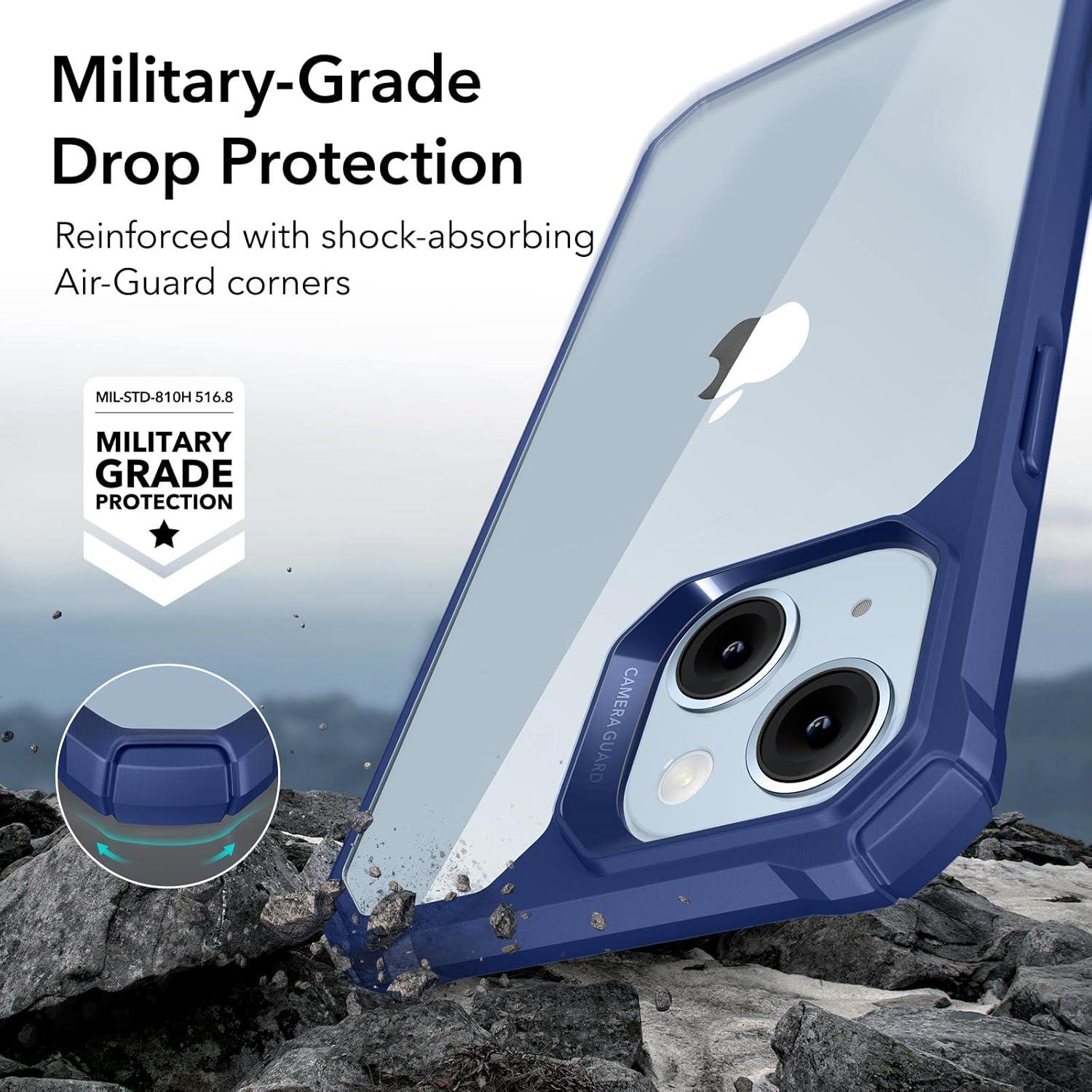ESR for iPhone 14/iPhone 13 Case, Military-Grade Protection with Shock-Absorbing Corners, Scratch-Resistant and Anti-Yellowing Acrylic Back, Slim Protective Phone Case, Air-Armor Series, Clear | Shockproof, Air-Guard Corners, Shock-Absorbing, Yellowing-Resistant, Acrylic Back(B-Clear Blue)