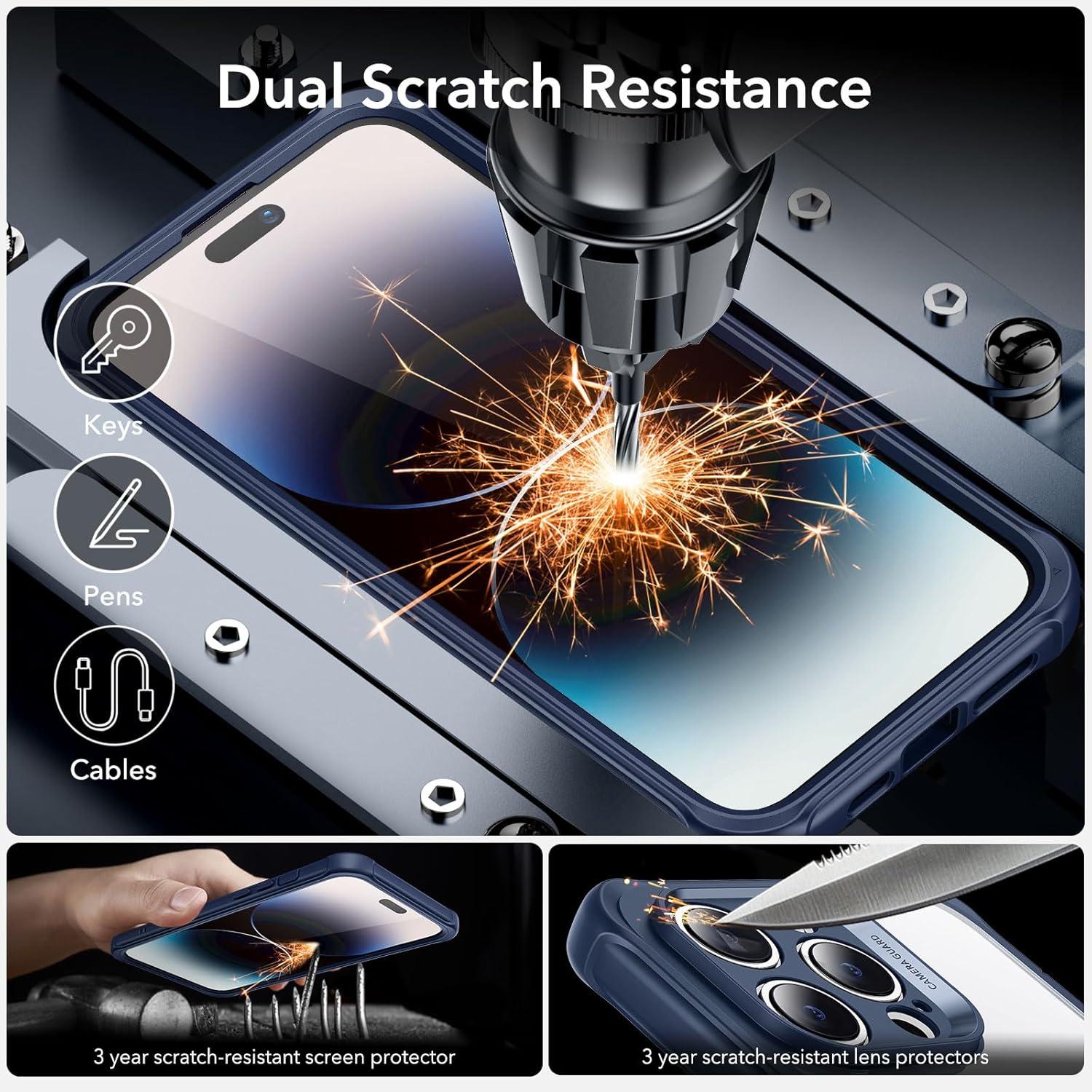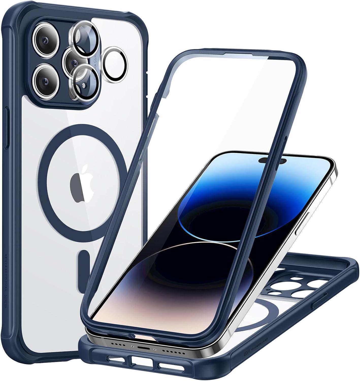 ESR for iPhone 14 Pro Max Case, Compatible with MagSafe, Full-Body Military-Grade Drop Proof Case for iPhone 14 Pro Max with Built-in 9H+ Tempered Glass Screen Protector, Clear Black(Clear Blue)