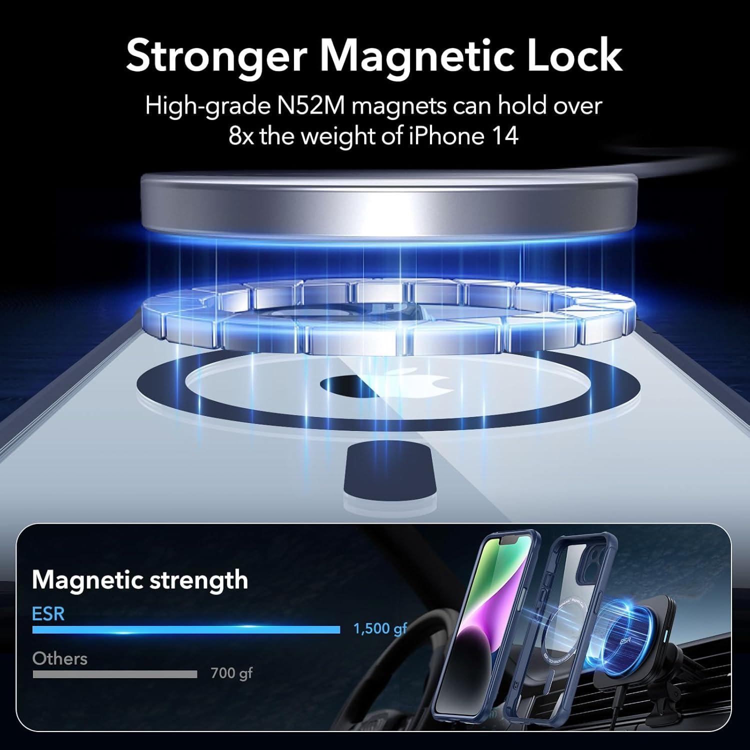Stronger Magnetic Lock: powerful ring of magnets with 1,500 g of holding force enables faster, easier place-and-go wireless charging and a secure lock on any MagSafe accessory