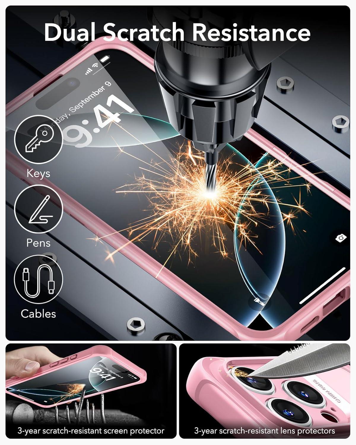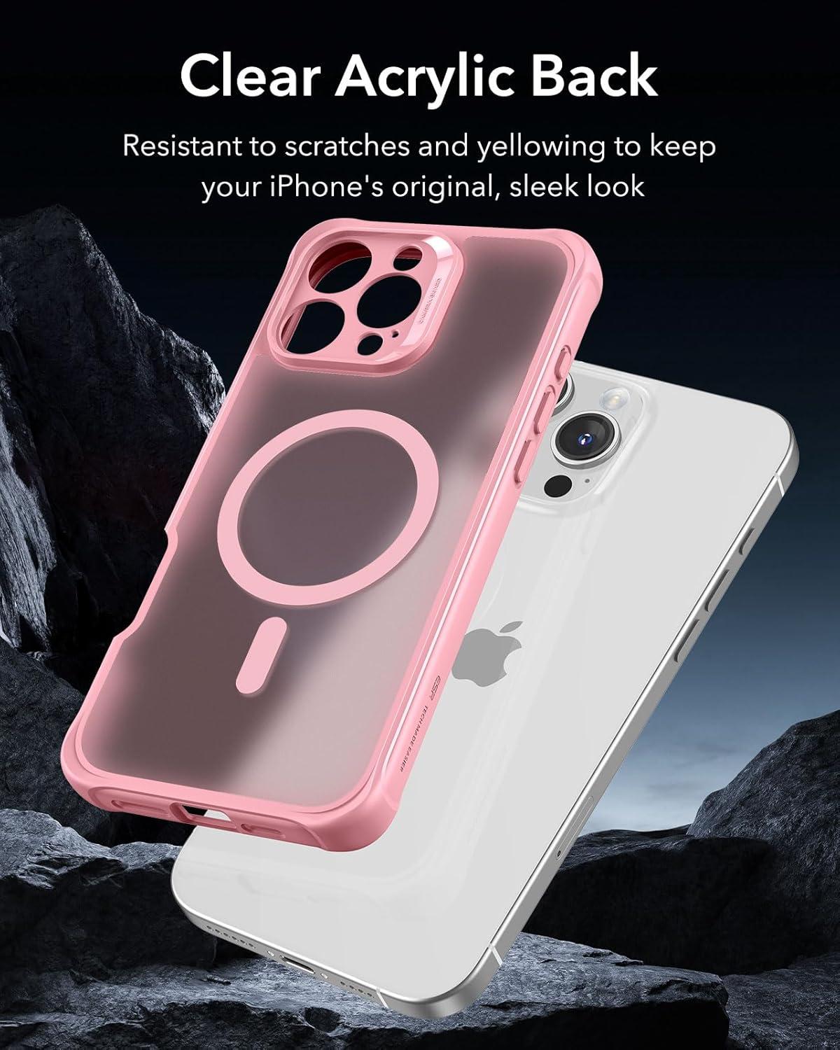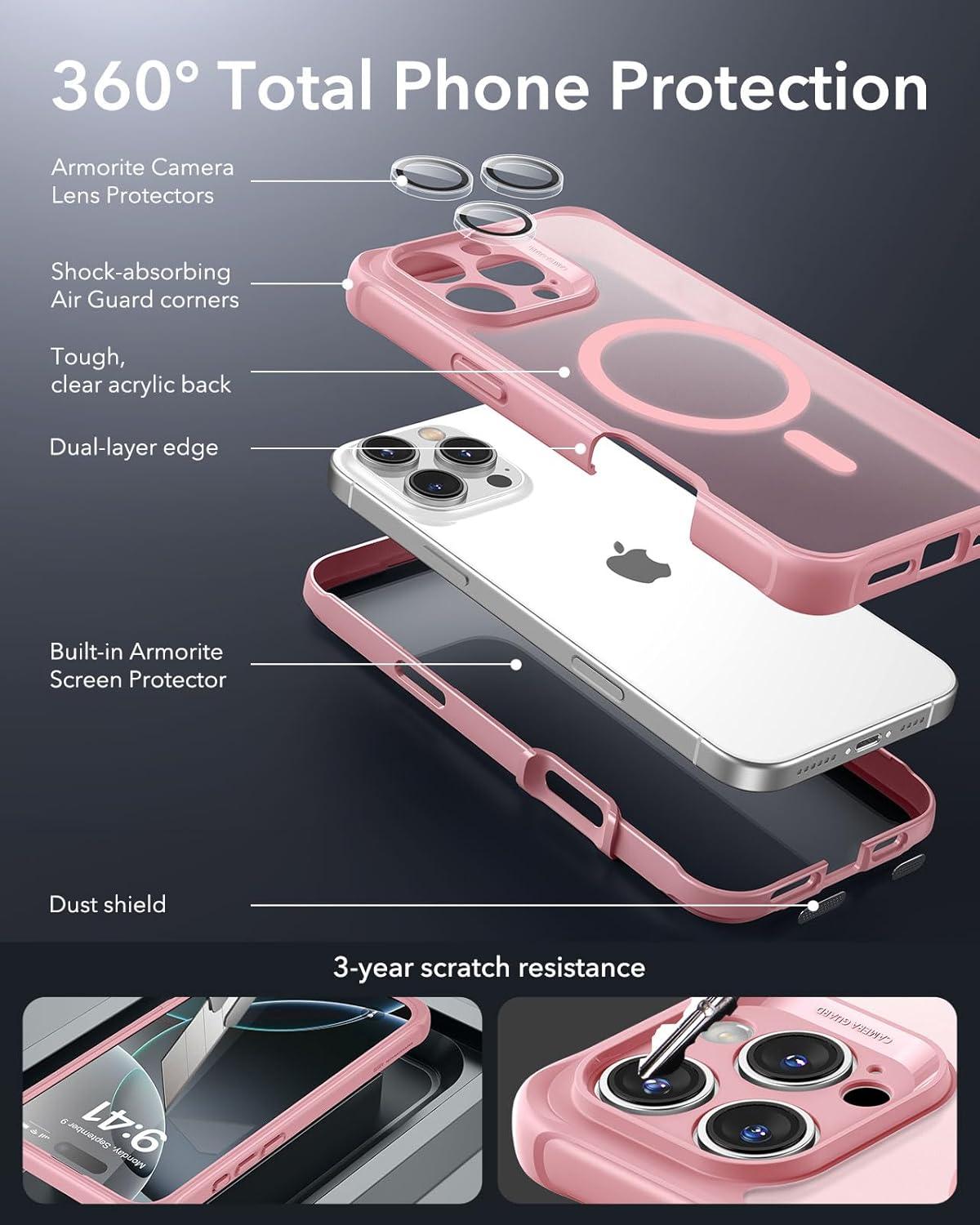 ESR for iPhone 14 Pro Max Case, Compatible with MagSafe, Full-Body Military-Grade Drop Proof Case for iPhone 14 Pro Max with Built-in 9H+ Tempered Glass Screen Protector, Clear Black(Frosted Pink)