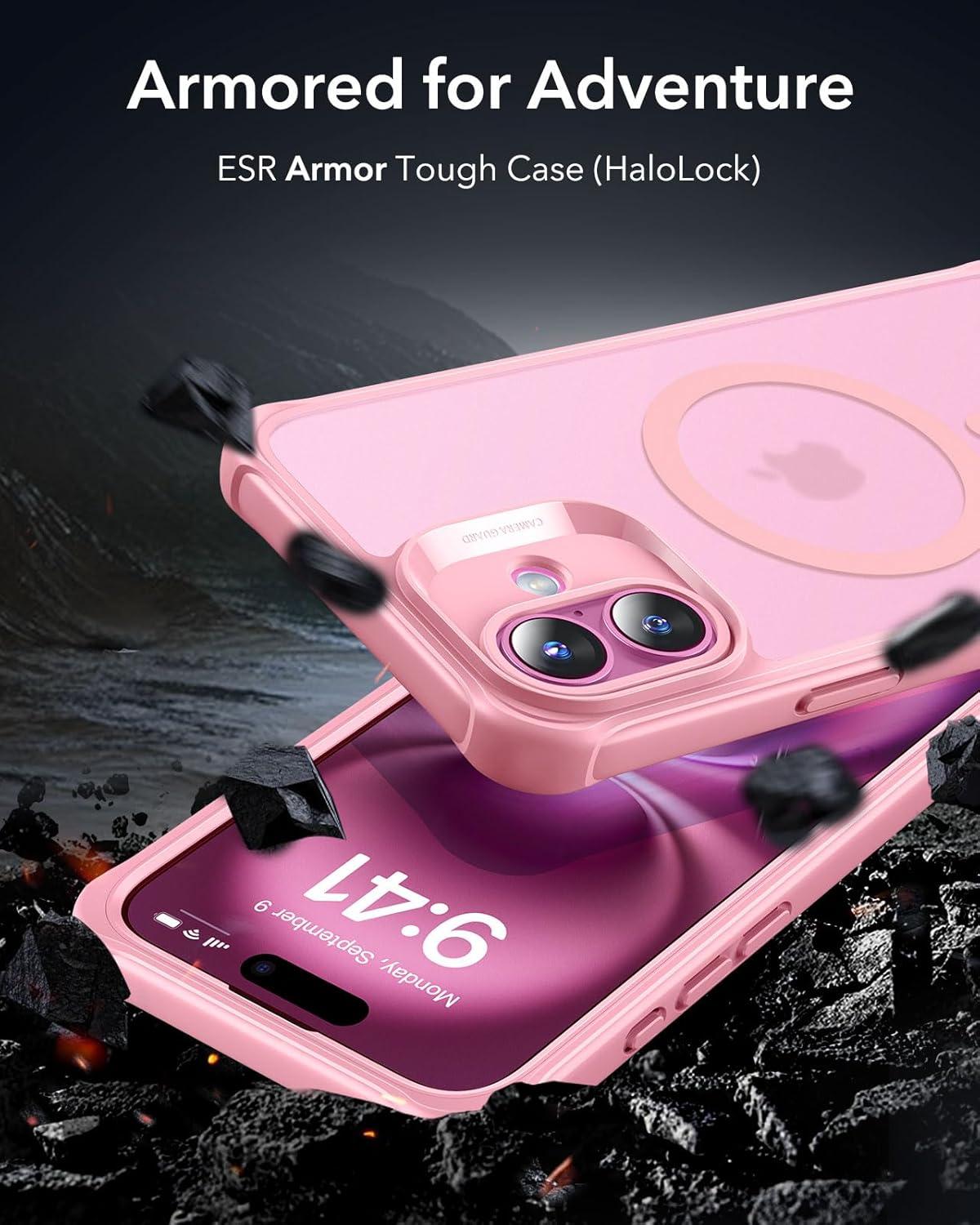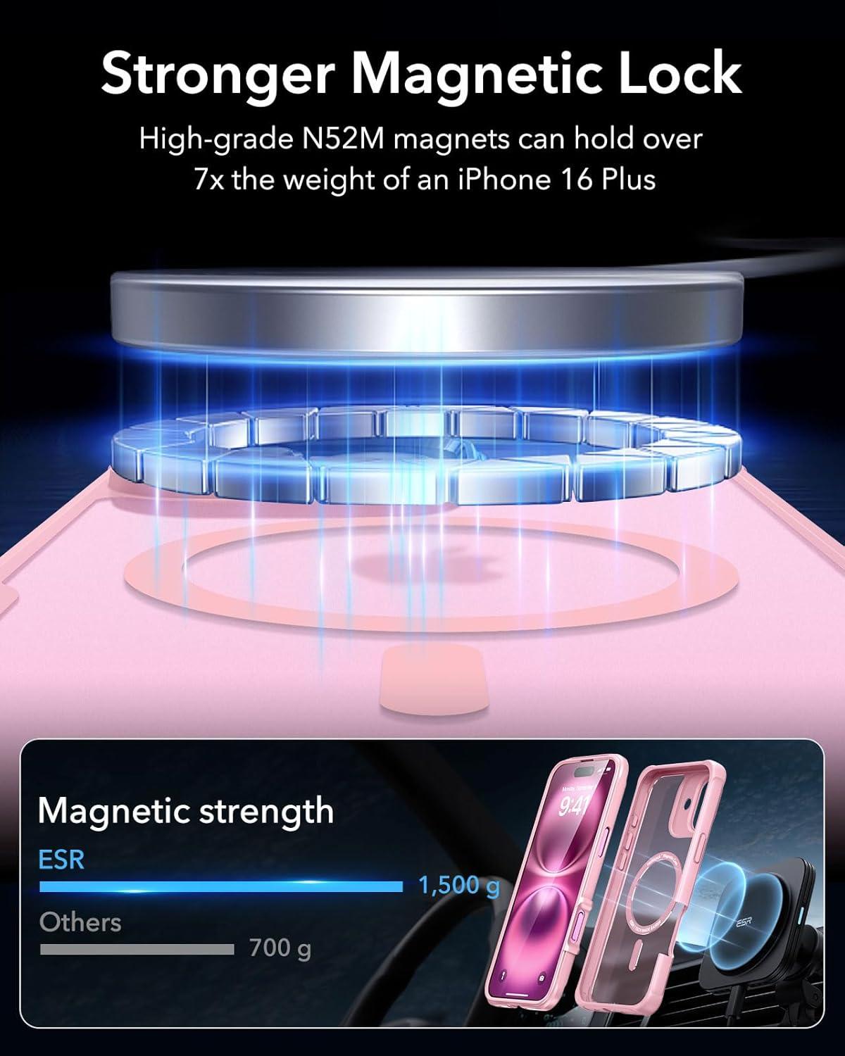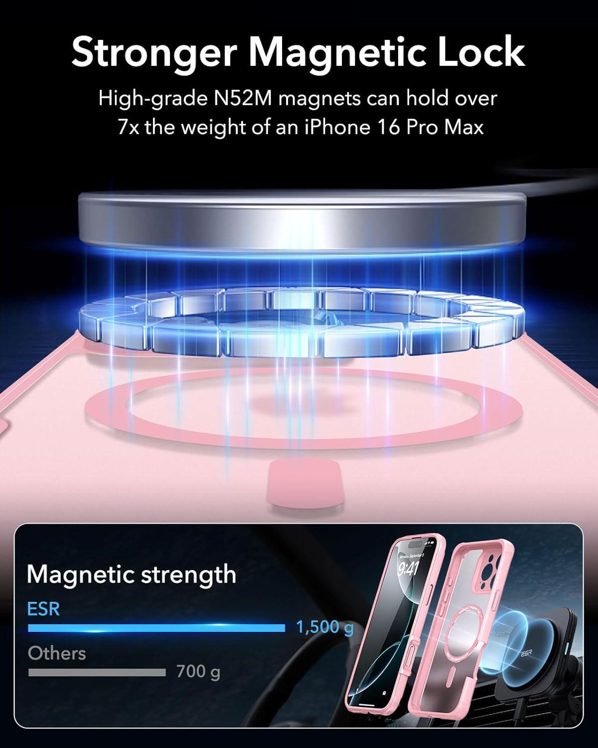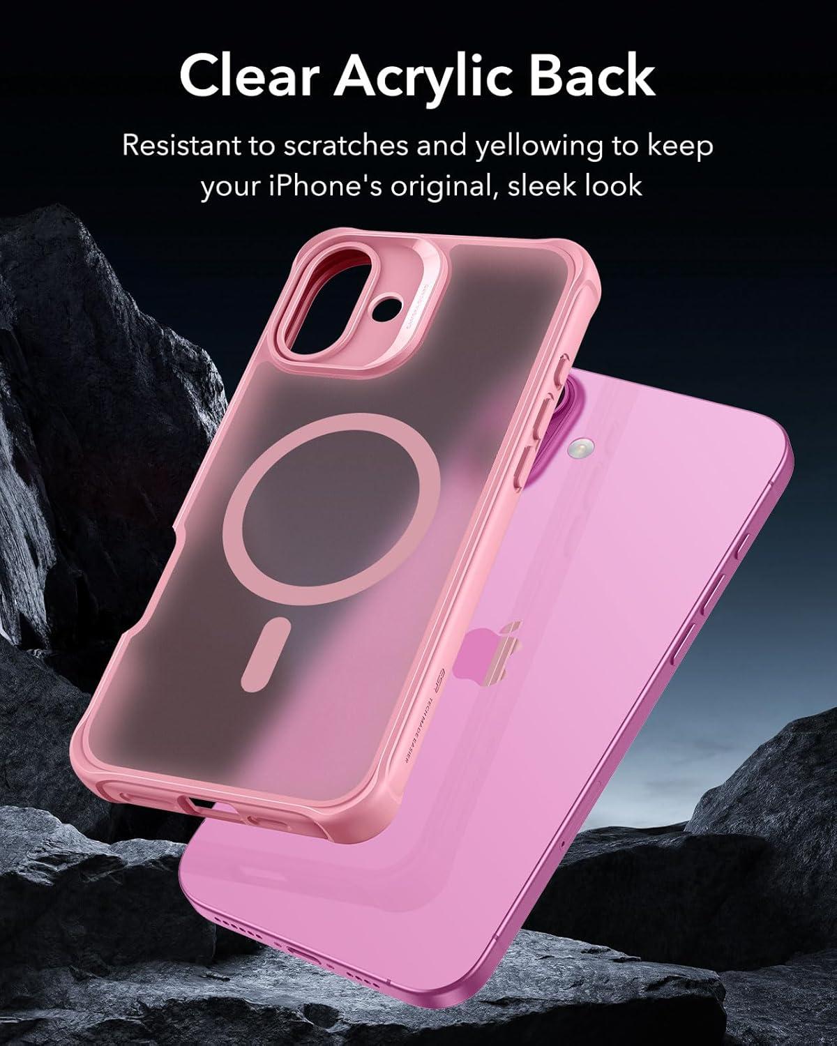 ESR for iPhone 14 Pro Max Case, Compatible with MagSafe, Full-Body Military-Grade Drop Proof Case for iPhone 14 Pro Max with Built-in 9H+ Tempered Glass Screen Protector, Clear Black(Frosted Pink)