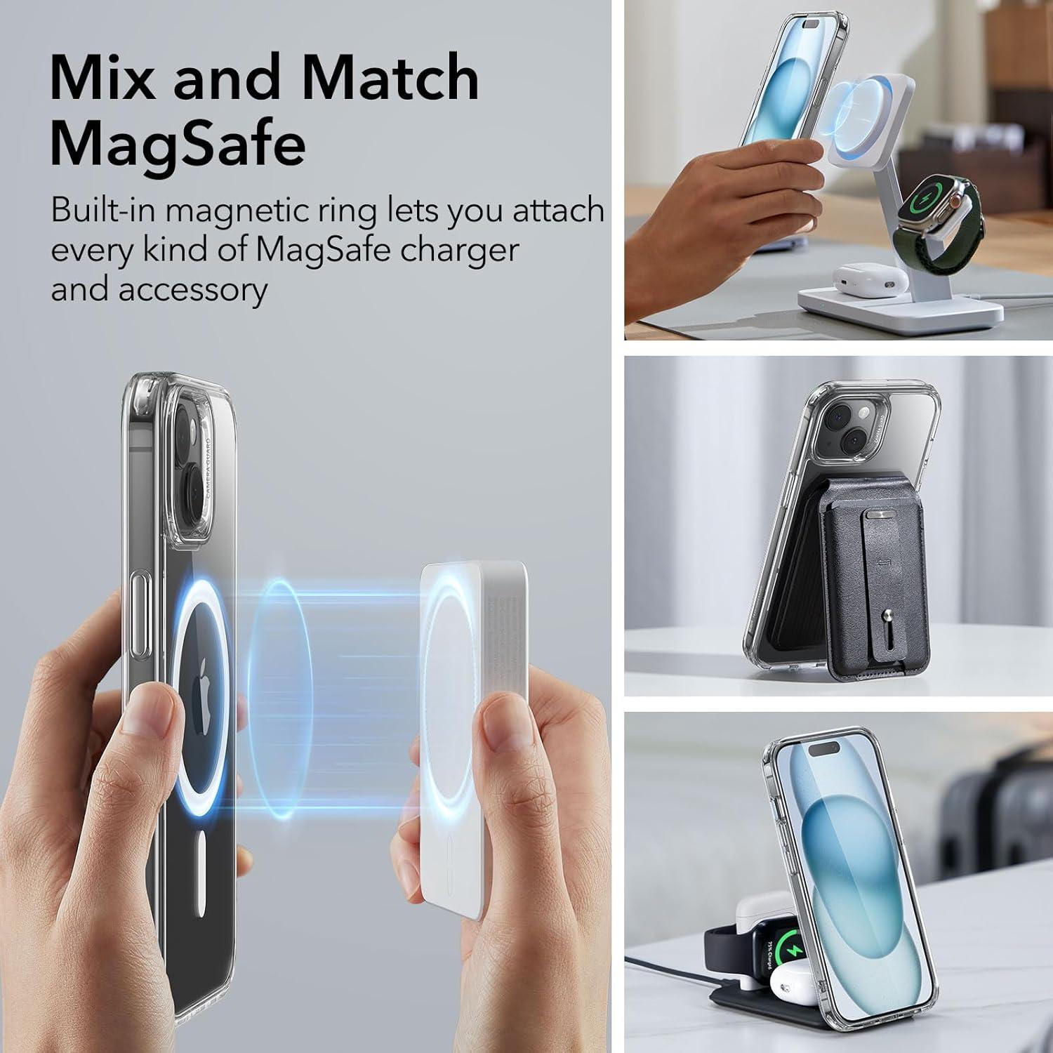 ESR for iPhone 15 Pro Case Set, 1 Tempered-Glass Screen Protector, 1 Set of Lens Protectors, Military-Grade Protection, Yellowing and Scratch Resistant MagSafe Phone Case, Classic Series, Clear(Clear Set)
