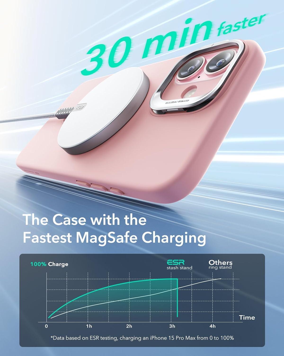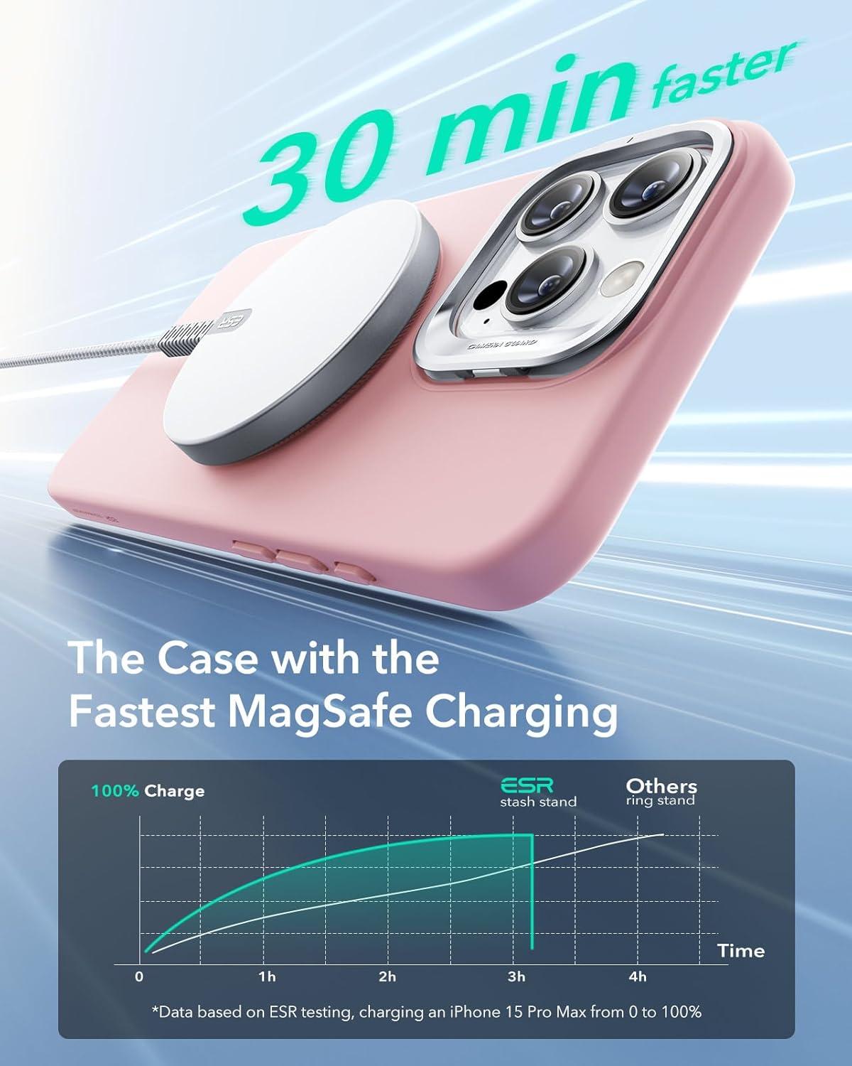 Adjustable Stash Stand: positioned around camera frame to stay hidden when folded away while keeping MagSafe ring 100% unobstructed; enjoy a freely adjustable and stable view for watching shows whenever, wherever