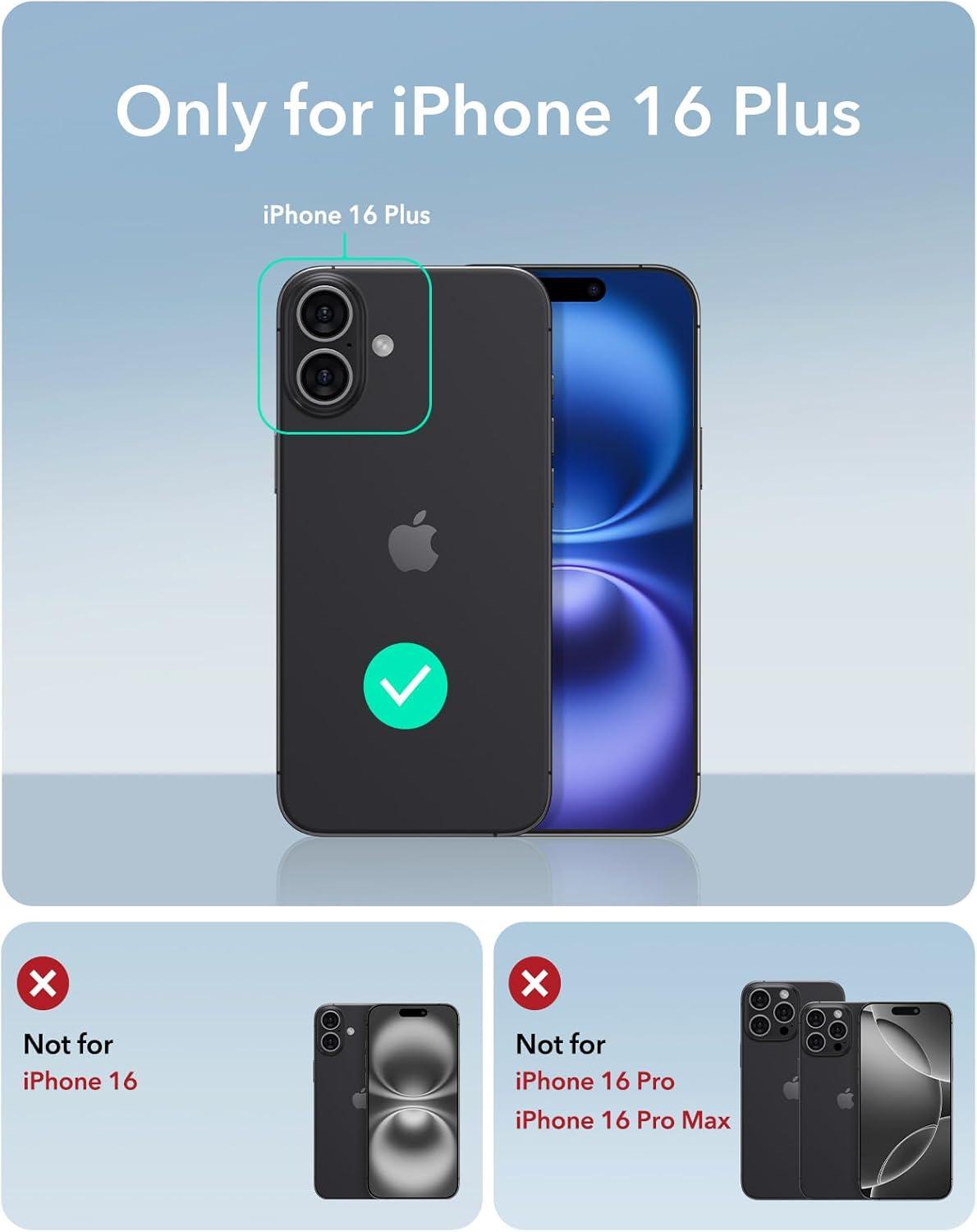 Compatibility: only for iPhone 16 Plus; doesn't include camera lens protectors or built-in camera lens protector