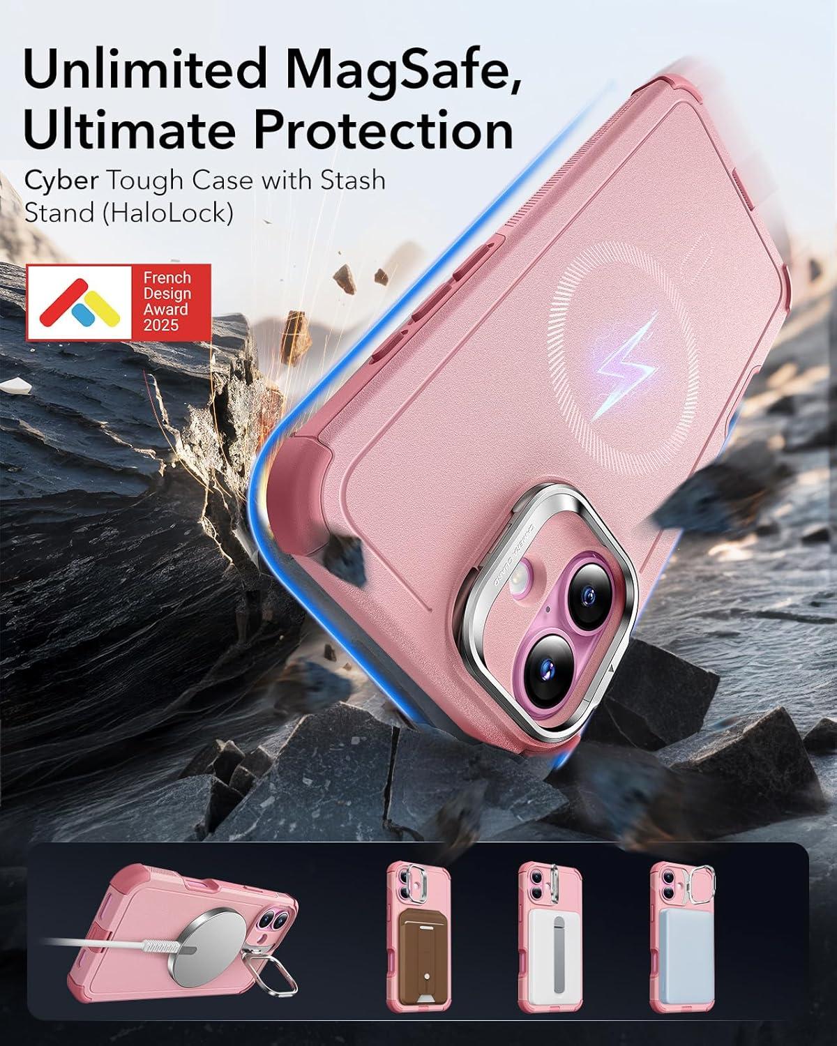 Be the first to review “ESR for iPhone 17 Pro Max Case with Stash Stand, 7X Military-Grade Drop Protection with Camera Control, Shock-Absorbing Phone Rugged Cover, Compatible with MagSafe Accessories, Cyber Series, Black(Magnetic Stand-Pink)”