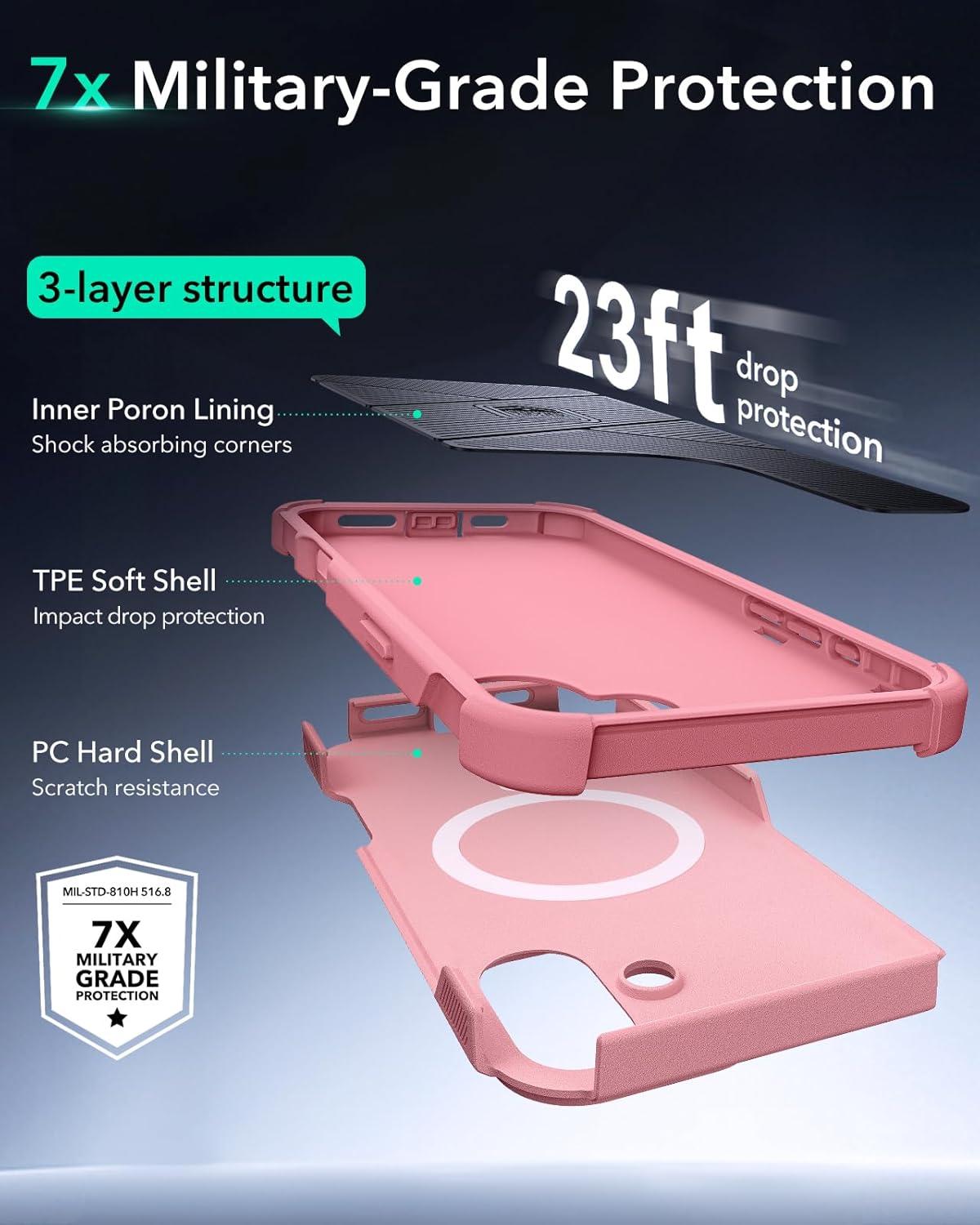 Military-Grade Protection: rigorously tested to ensure 7x total protection on all sides, 3-layer structure with a hard TPE and PC outer shell resists impacts and scratches, while the soft inner shell absorbs shocks, protecting against drops up to 23 ft