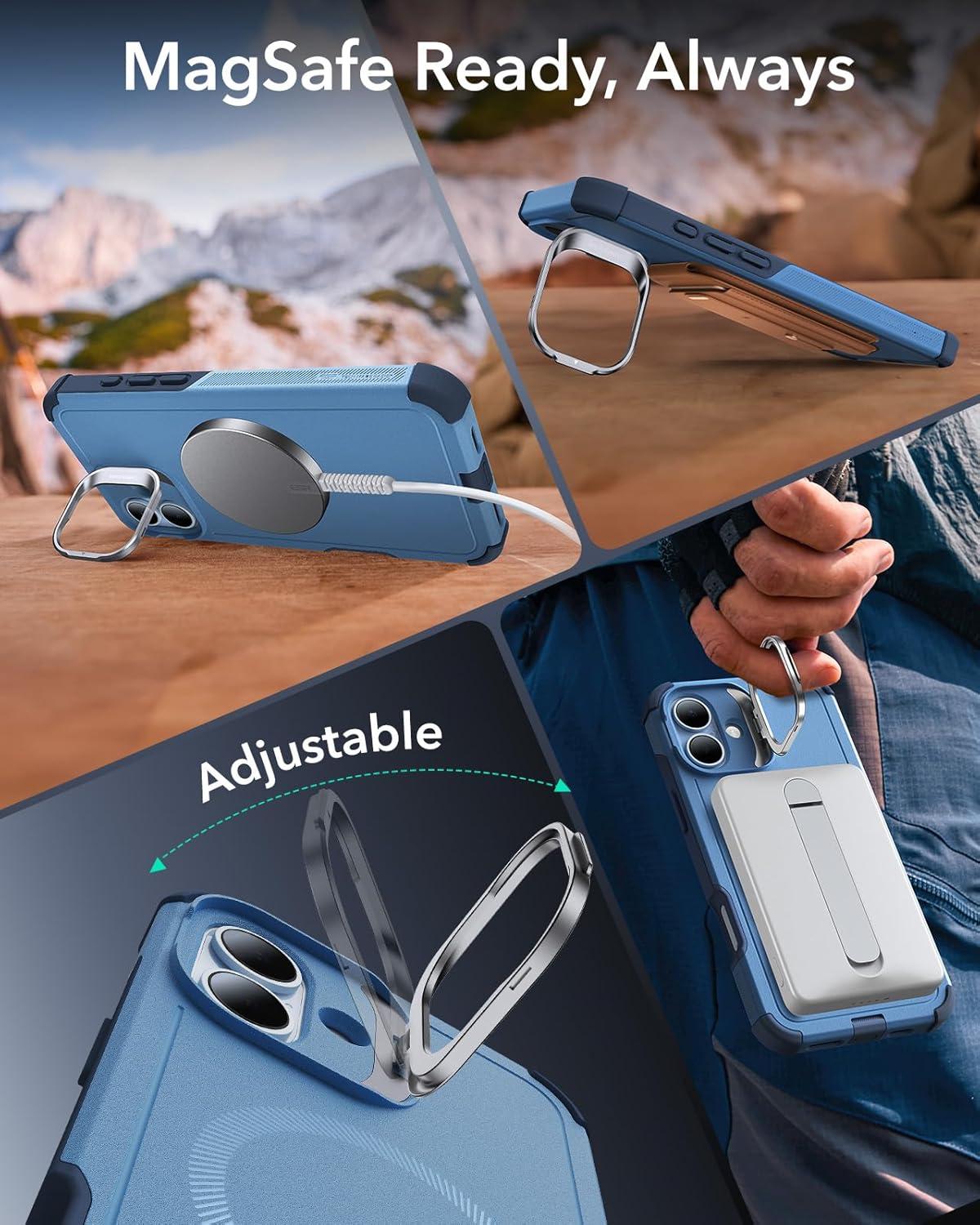 ESR for iPhone 17 Pro Max Case with Stash Stand, 7X Military-Grade Drop Protection with Camera Control, Shock-Absorbing Phone Rugged Cover, Compatible with MagSafe Accessories, Cyber Series, Black(Magnetic Stand-Light Blue)
