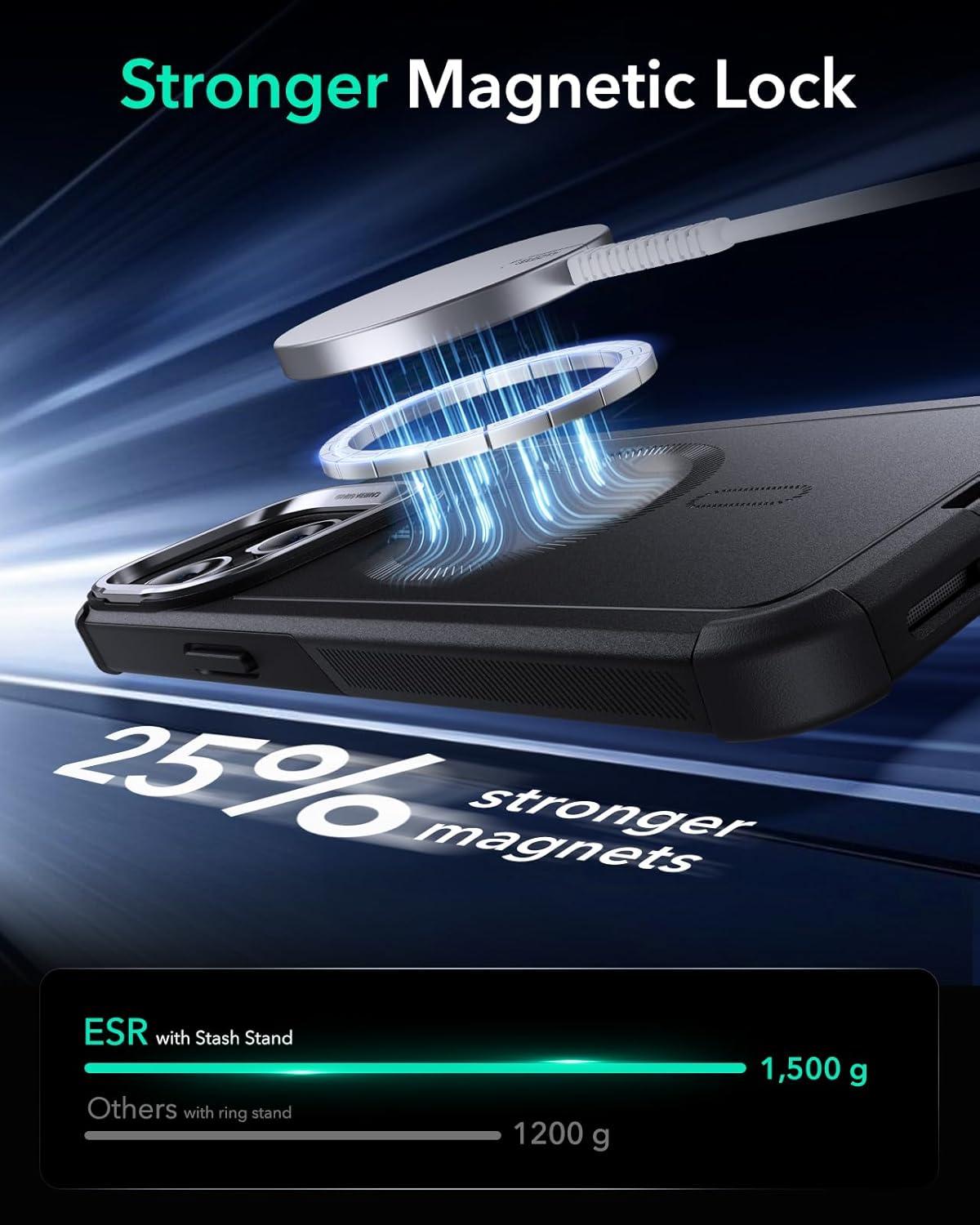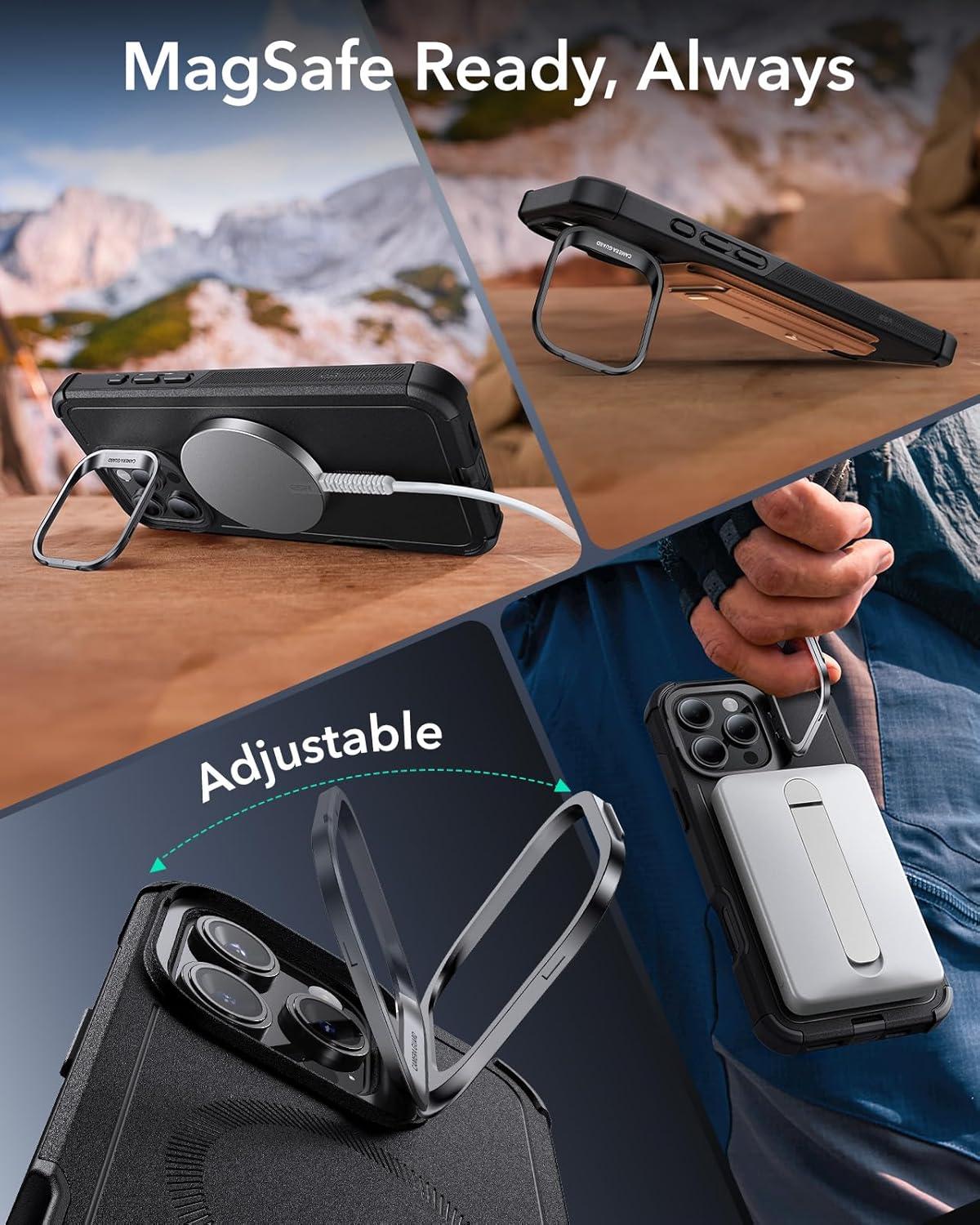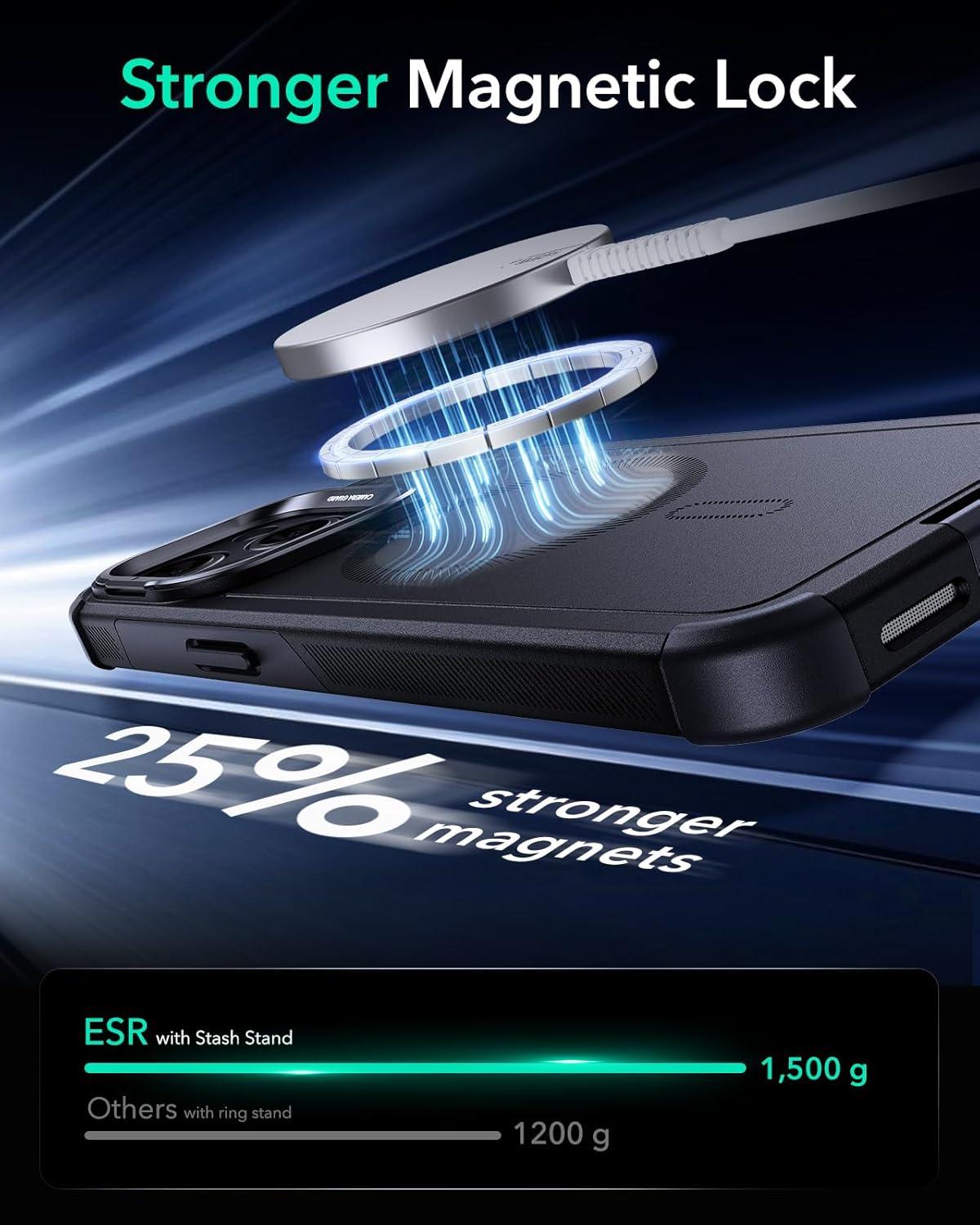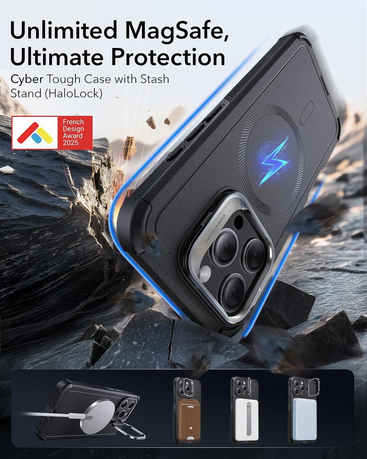 ESR for iPhone 17 Pro Max Case with Stash Stand, 7X Military-Grade Drop Protection with Camera Control, Shock-Absorbing Phone Rugged Cover, Compatible with MagSafe Accessories, Cyber Series, Black(Magnetic Stand-Black)
