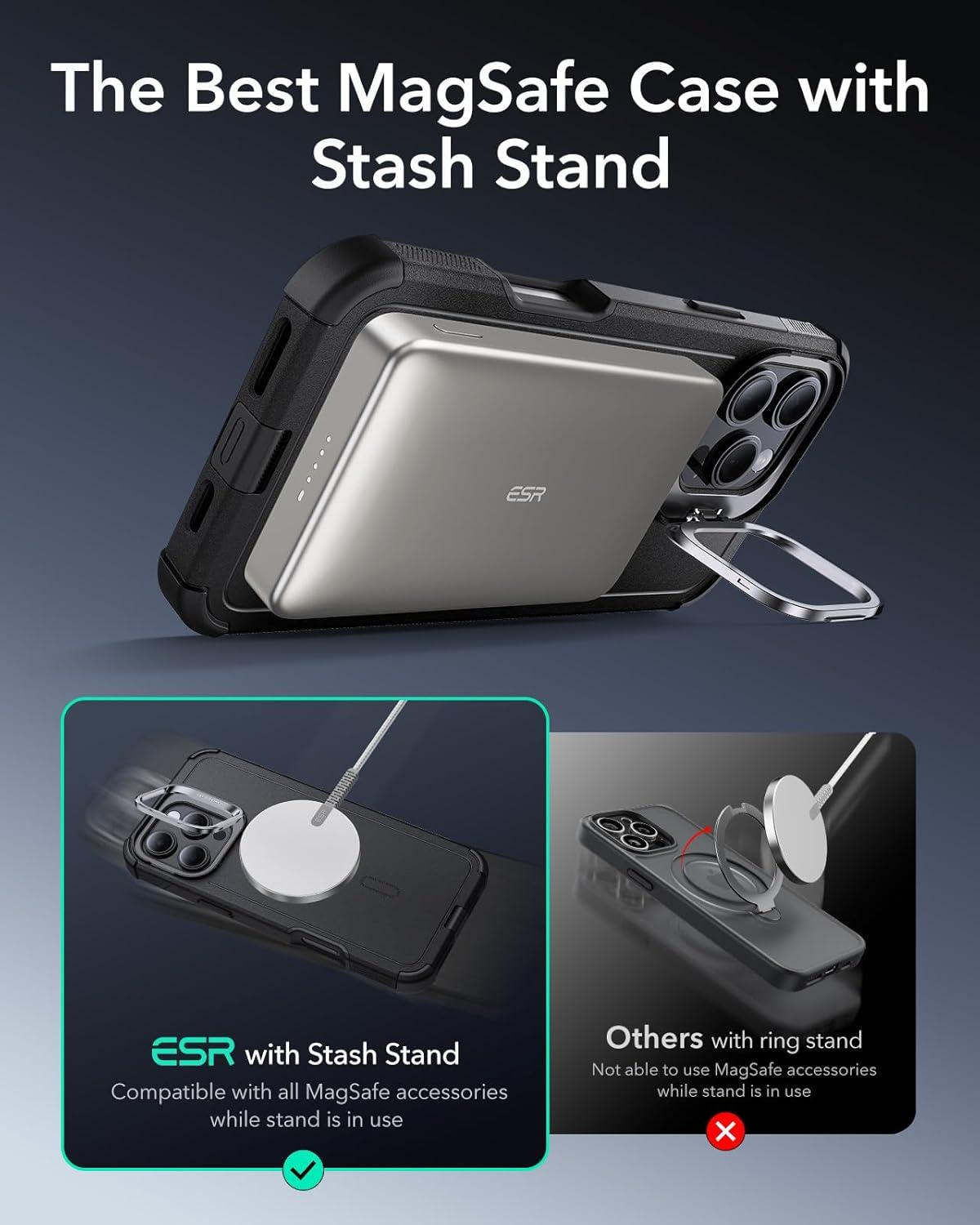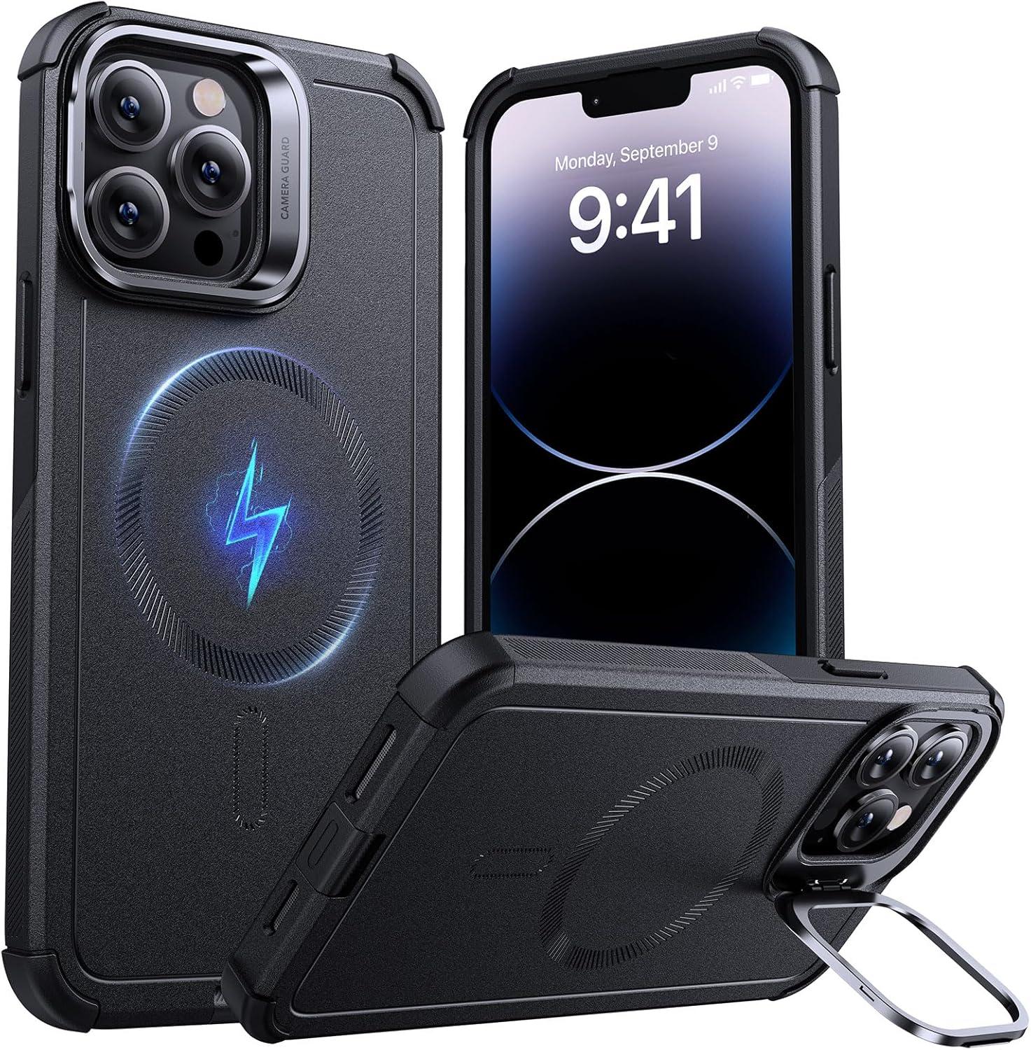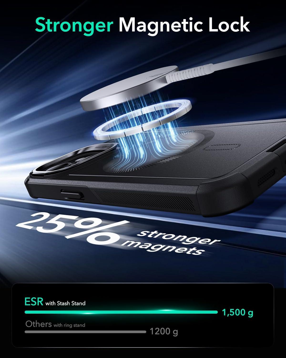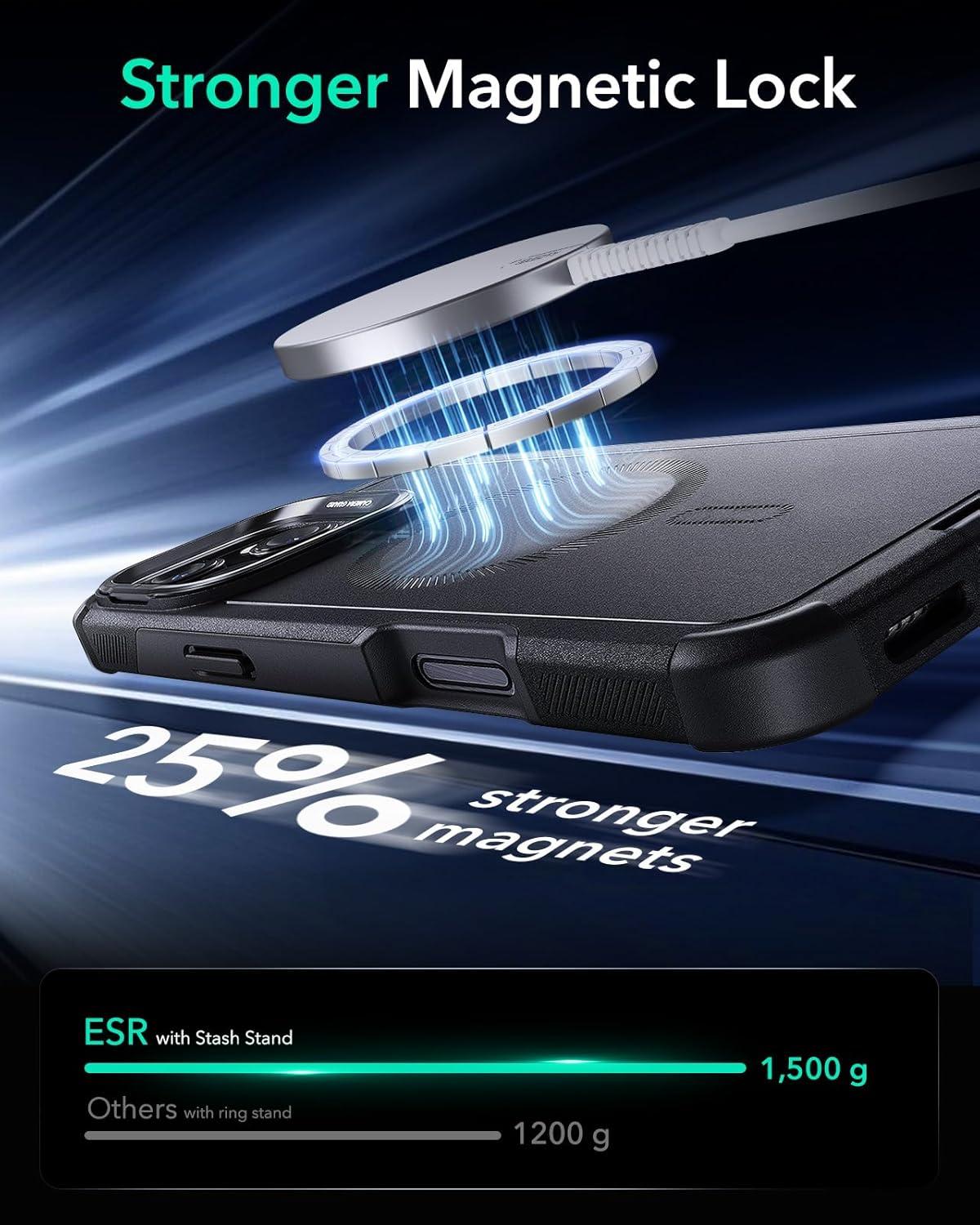ESR for iPhone 17 Pro Max Case with Stash Stand, 7X Military-Grade Drop Protection with Camera Control, Shock-Absorbing Phone Rugged Cover, Compatible with MagSafe Accessories, Cyber Series, Black(Magnetic Stand-Black)