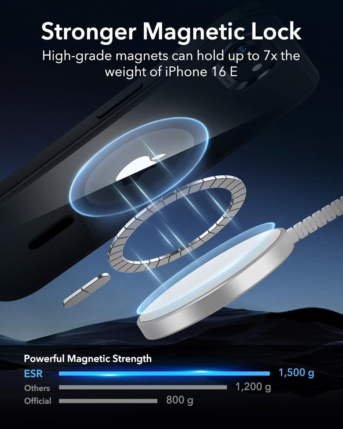 Stronger Magnetic Lock: powerful built-in magnets with 1,500 g of holding force enable faster, easier place-and-go wireless charging and provide a secure lock on any MagSafe accessory