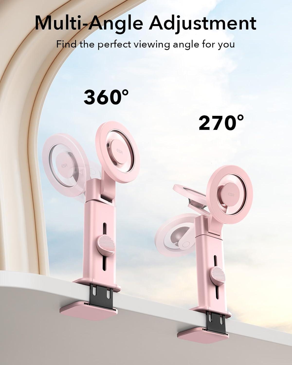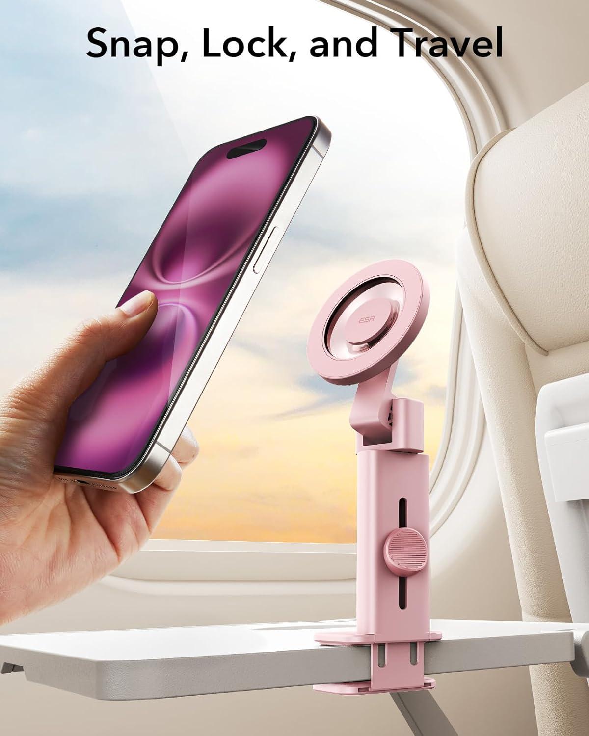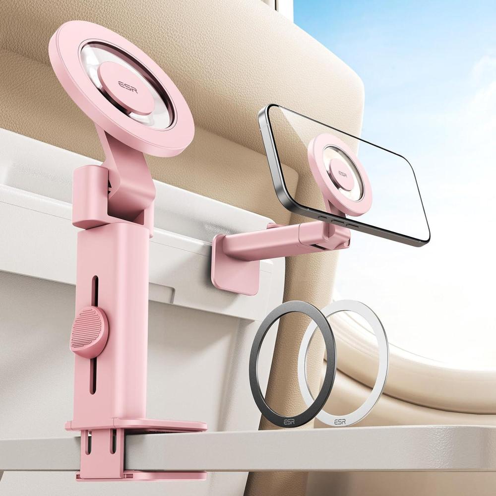 ESR for MagSafe Airplane Phone Holder, Airplane Travel Essentials, Portable Travel Phone Holder, Magnetic Plane Phone Mount with Metal Ring for iPhone 17 16 16e 15 14 13 12, Samsung, Android, Google(Pink)