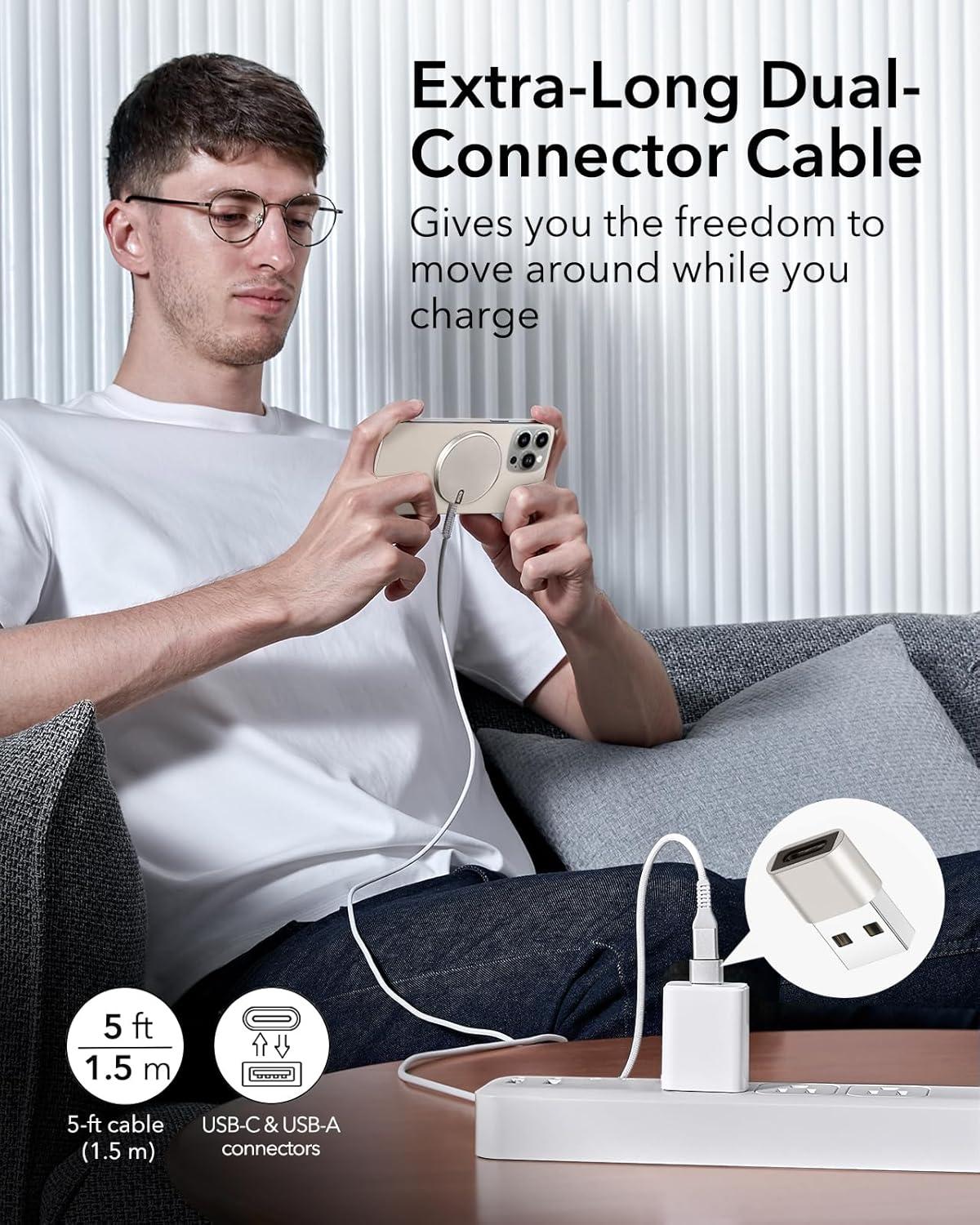 ESR for MagSafe Charger 15W Wireless Charger for iPhone 17/16/15/14/13/12 Apple Magnetic Charging Pad for AirPods 4/3/Pro/Pro 2 Galaxy S25 Series with Dual USB C Ports, Black(Natural Titanium)