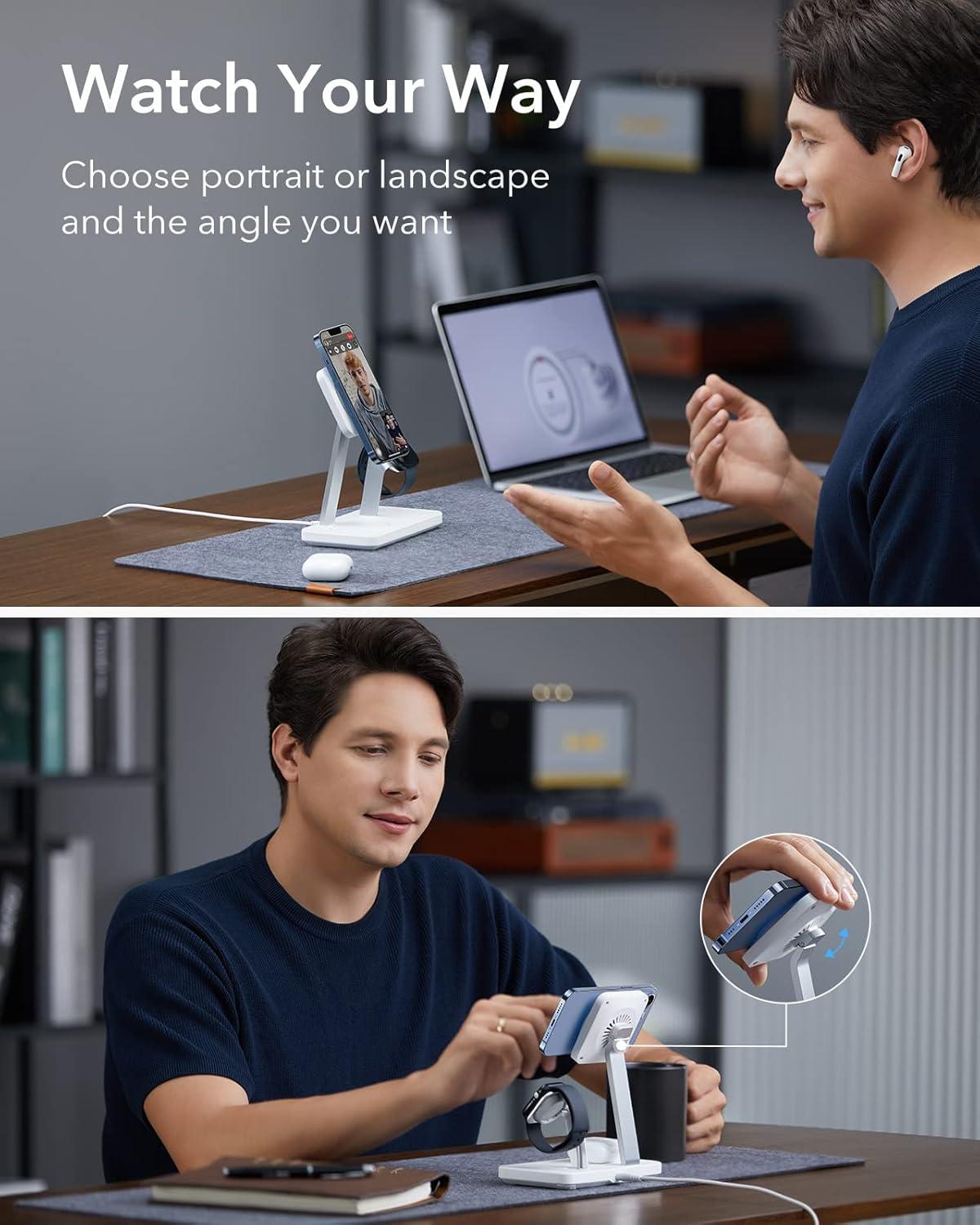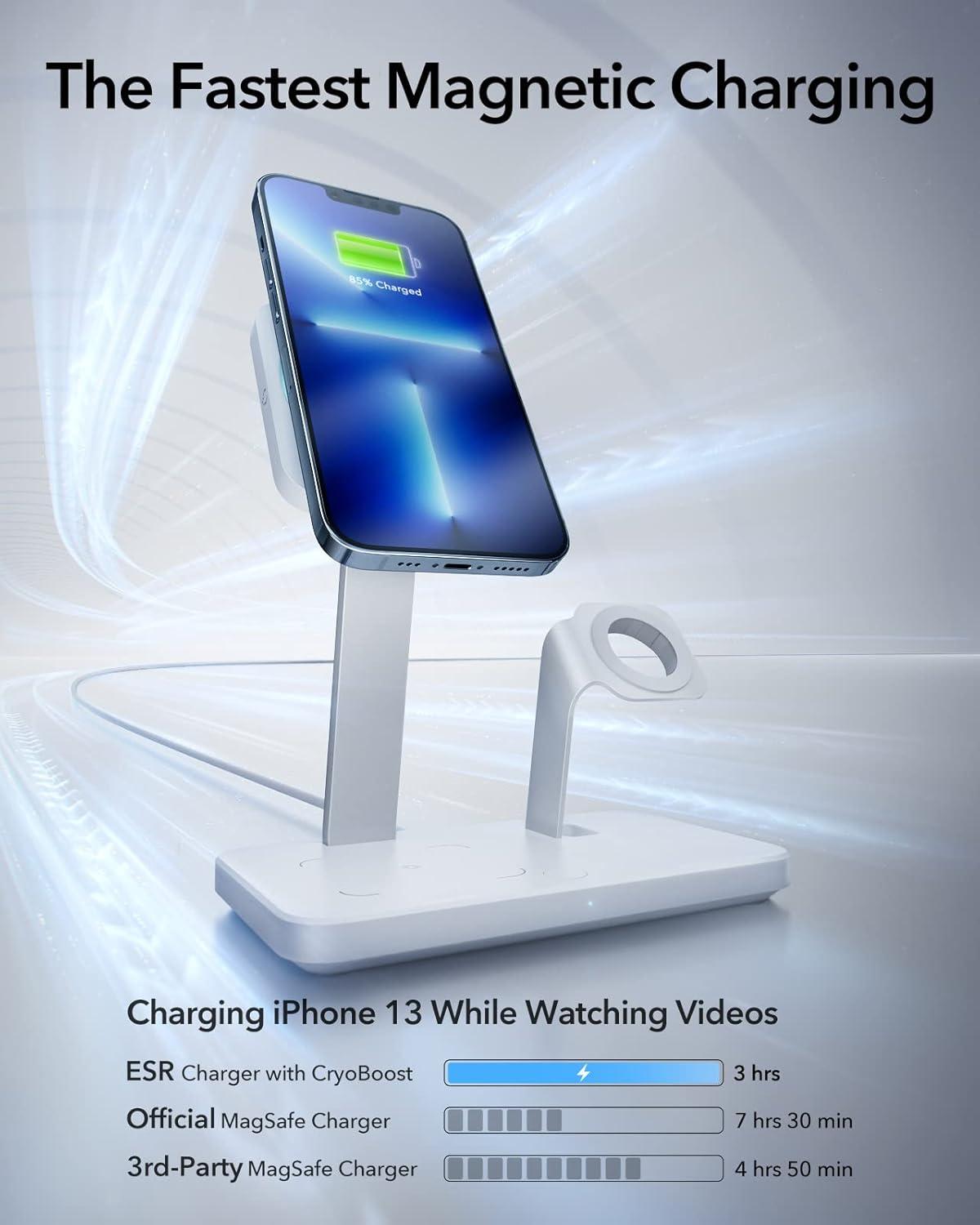 ESR for MagSafe Charger Stand (HaloLock), 3-in-1 for MagSafe Charging Station, Magnetic Wireless Charger for iPhone 15/14/13/12 Series, AirPods Pro/3/2, Phone-Cooling Fast Charging