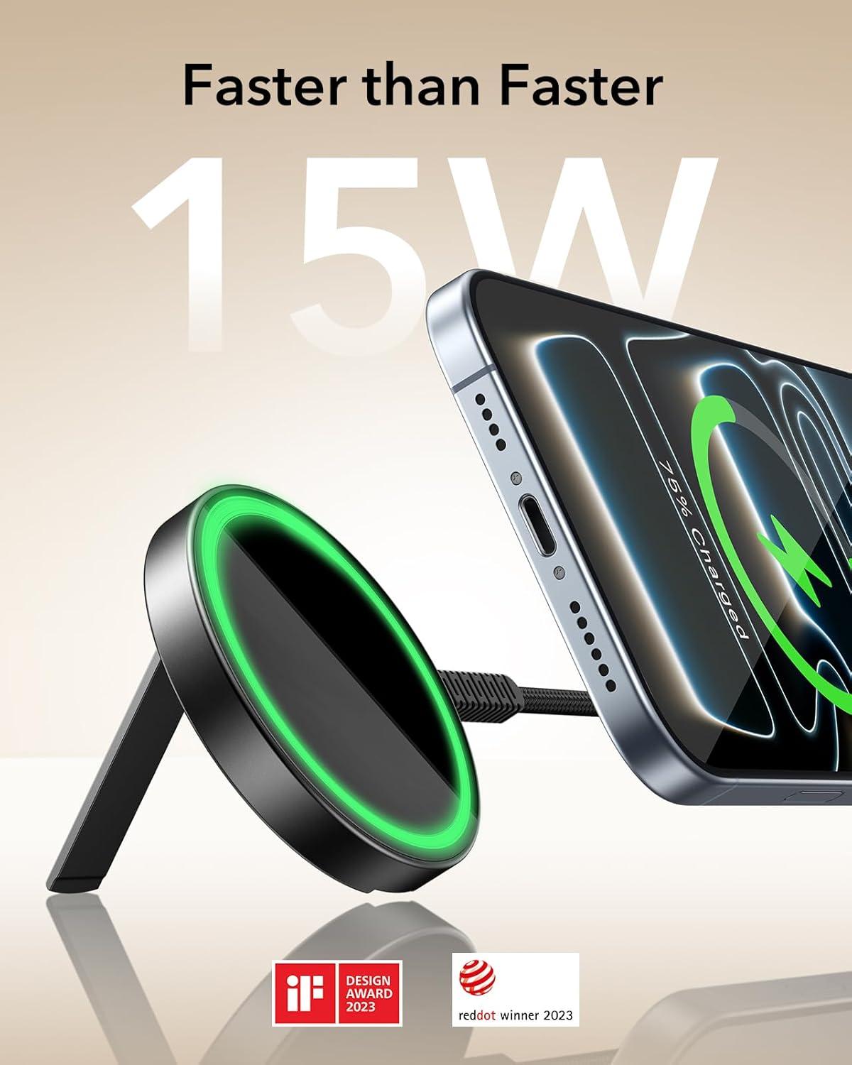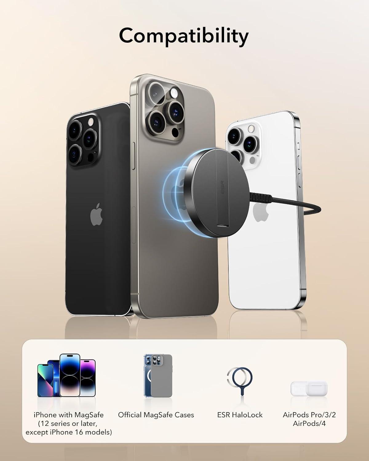ESR for Magsafe Charger with Kickstand, 15W Wireless Charger for iPhone 15/14/13/12, AirPods 4/3/Pro/Pro 2,Galaxy S25,Strong Magnetic Charging Pad with Type-C Cable,Black(Black with Stand)