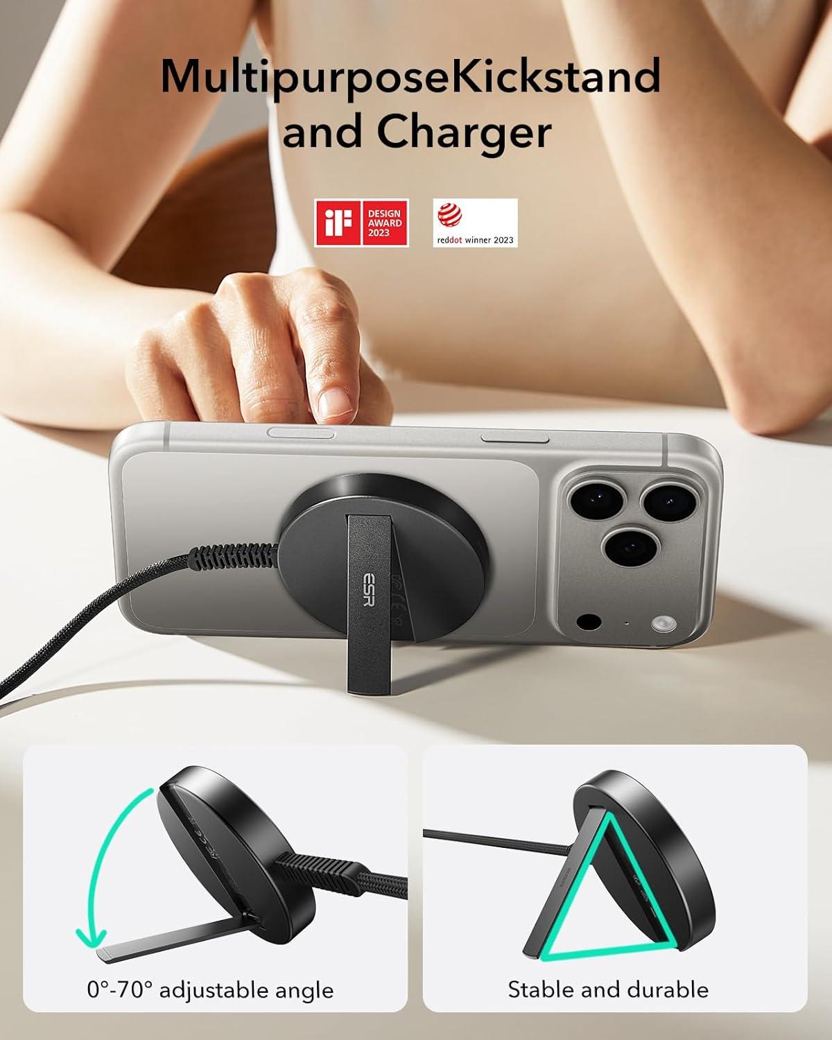 Be the first to review “ESR for Magsafe Charger with Kickstand, 15W Wireless Charger for iPhone 15/14/13/12, AirPods 4/3/Pro/Pro 2,Galaxy S25,Strong Magnetic Charging Pad with Type-C Cable,Black(Black with Stand)”