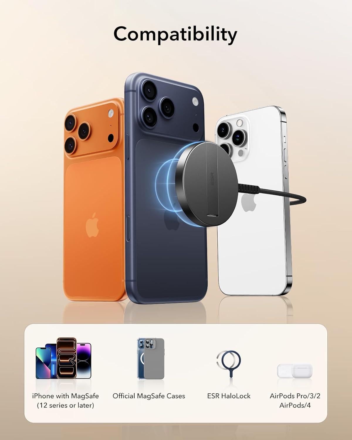 Be the first to review “ESR for Magsafe Charger with Kickstand, 15W Wireless Charger, Magsafe Charger for iPhone 17/16/15/14/13/12, AirPods 4/3/Pro/Pro 2,Galaxy S25,Strong Magnetic Charging Pad with Type-C Cable,Black(Black with Stand)”
