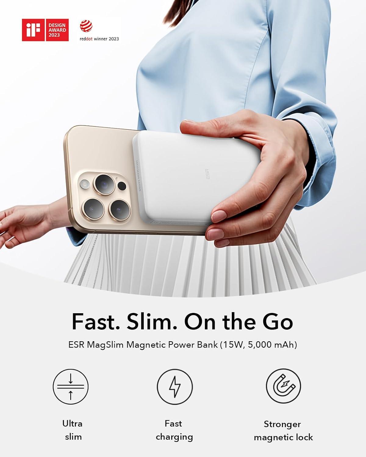 ESR for MagSafe Power Bank, 0.55 in Ultra-Compact 5,000mAh MagSafe Portable Charger,15W Ultra-Fast Battery Pack, 20W USB-C MagSlim Charger with Cable for iPhone 17/16/15/14/13/12,Lavender(15W 5000mAh-White)