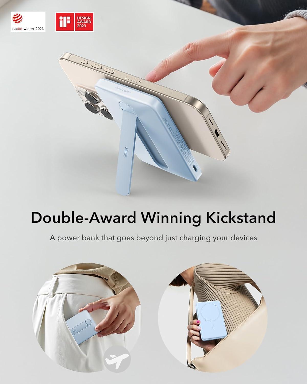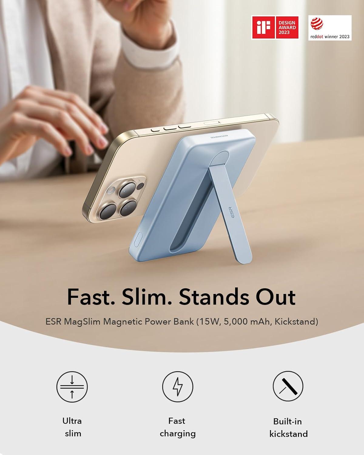 ESR for MagSafe Power Bank, 0.55 in Ultra-Compact 5,000mAh MagSafe Portable Charger,15W Ultra-Fast Battery Pack, 20W USB-C MagSlim Charger with Cable for iPhone 17/16/15/14/13/12,Lavender(15W Stand 5000mAh-Sky Blue)