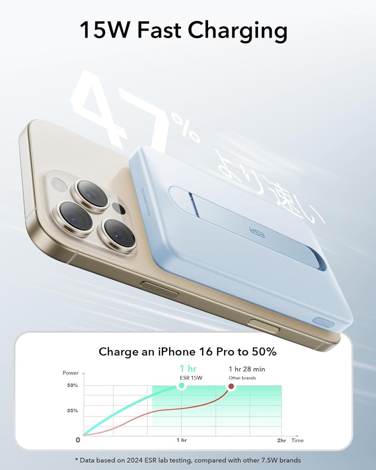 15W Fast Charging: 15W MagSafe iPhone charging gives you safer, faster, and more reliable charge, powering your iPhone 15 Pro 2x faster than a 7.5W magsafe power bank