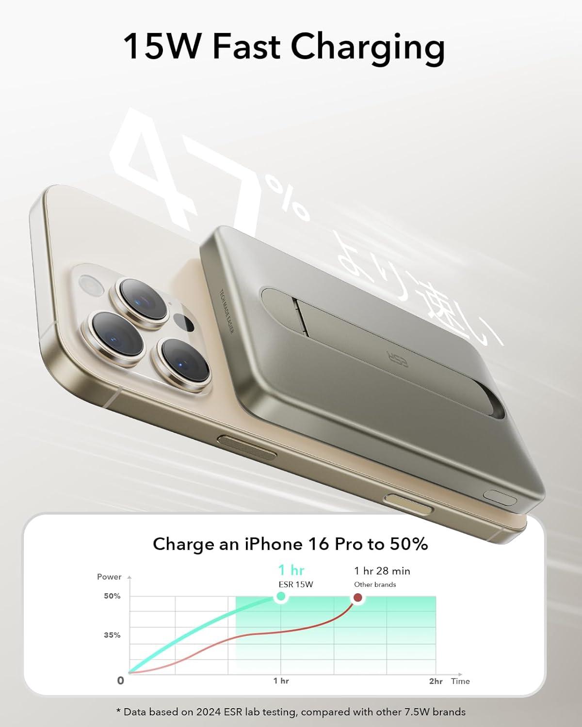 15W Fast Charging: 15W MagSafe iPhone charging gives you safer, faster, and more reliable charge, powering your iPhone 15 Pro 2x faster than a 7.5W magsafe power bank