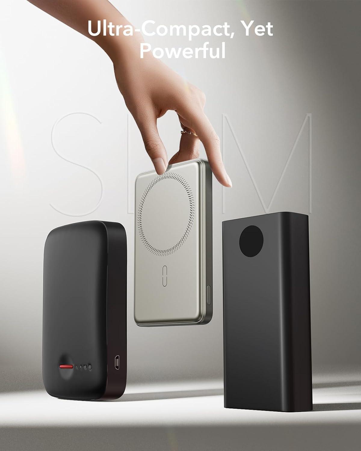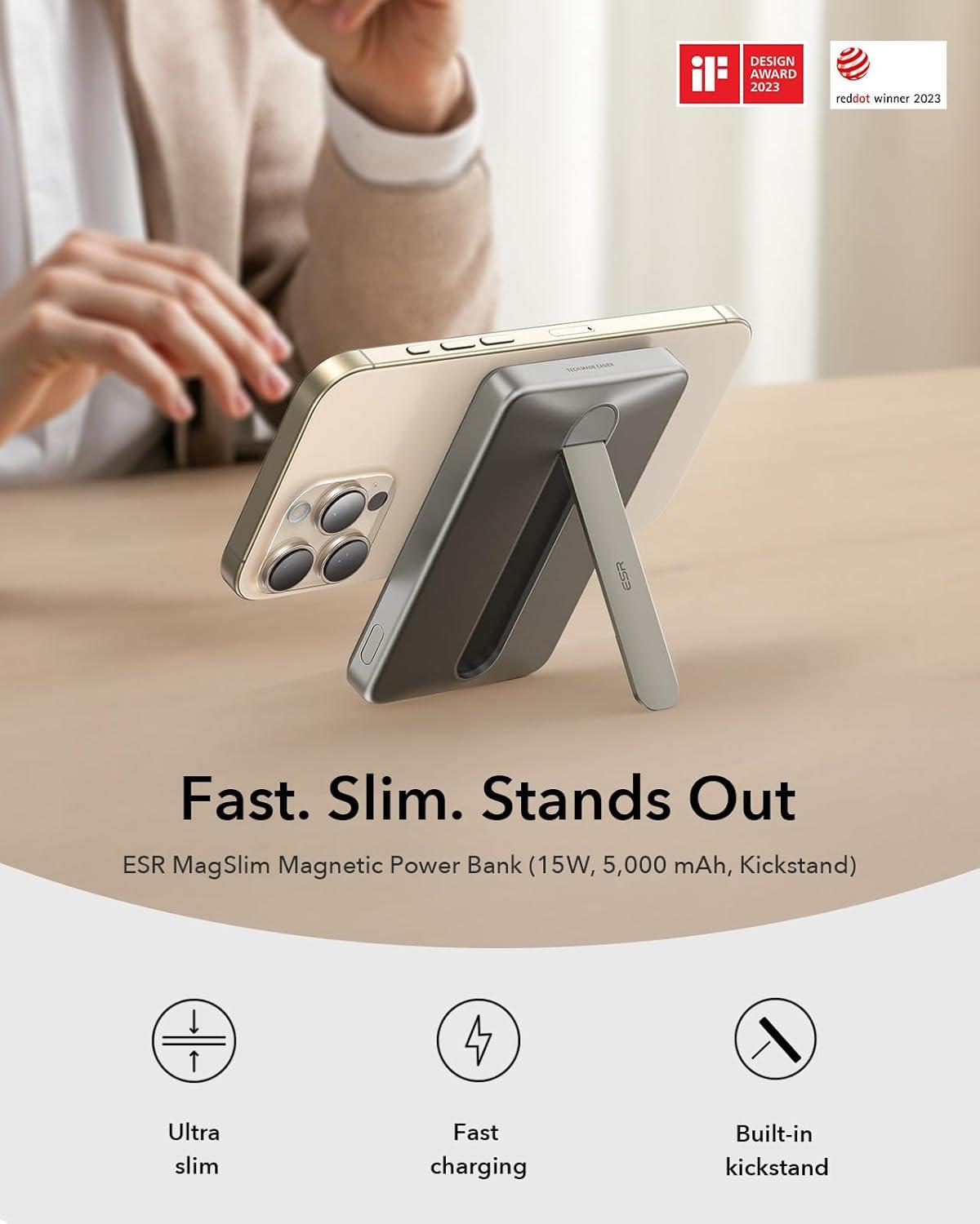 ESR for MagSafe Power Bank, 0.55 in Ultra-Compact 5,000mAh MagSafe Portable Charger,15W Ultra-Fast Battery Pack, 20W USB-C MagSlim Charger with Cable for iPhone 17/16/15/14/13/12,Lavender(15W Stand 5000mAh-Titanium)