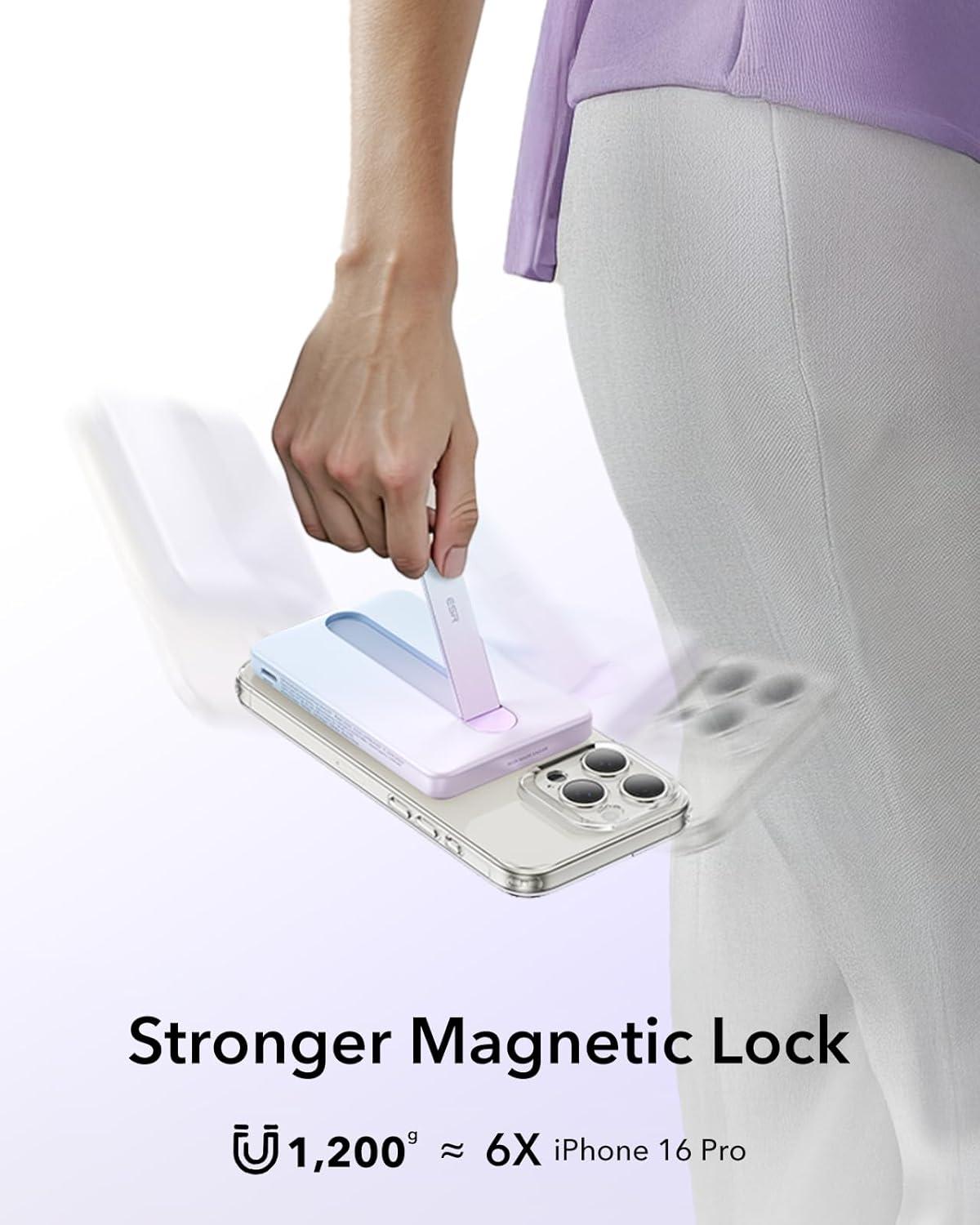 Strong Magnetic Lock: 1,200 g of magnetic force keeps your magsafe battery pack securely in place during charging