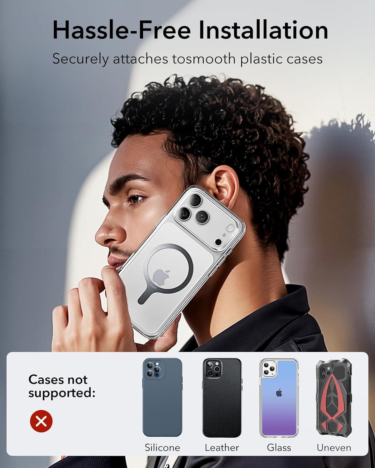 Welcome to MagSafe: upgrade your case to MagSafe to unlock the potential of fast and easy wireless charging; only compatible with PC or TPU case without a non-slip coating.❌ The MagSafe ring is made of Metal! NOT MAGNET.