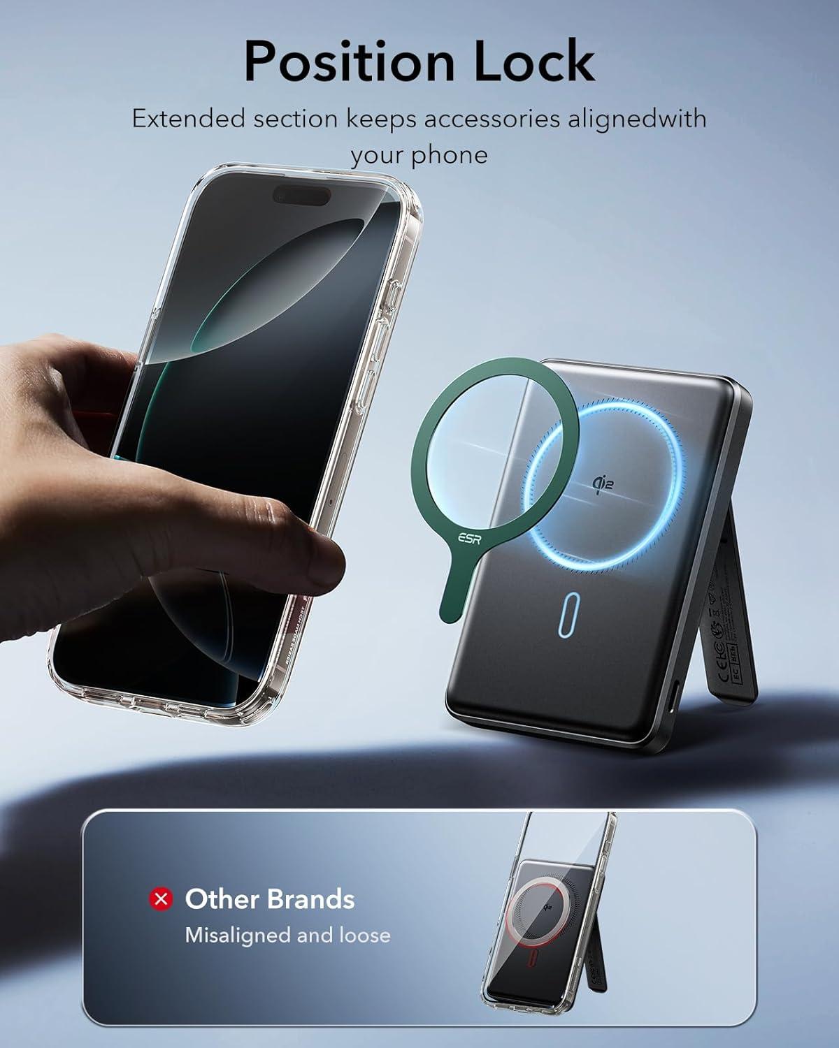 ESR for MagSafe Sticker 360, MagSafe Ring, 2 Pack Metal Ring for Phone Case, Universal Metal Wireless Charger Conversion Kit for iPhone 17/16/16e/15/14/13/12/11, Samsung Galaxy, Google Pixel 10, White(Green – 2 Pack)