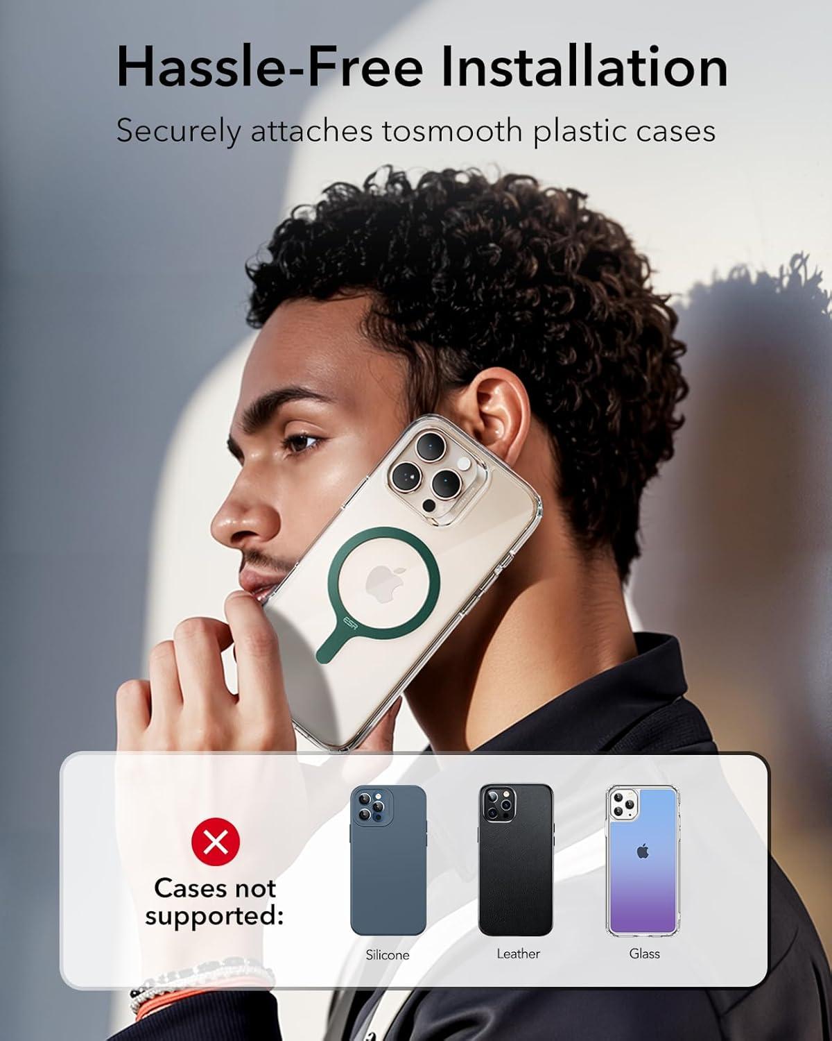Welcome to MagSafe: upgrade your case to MagSafe to unlock the potential of fast and easy wireless charging; only compatible with PC or TPU case without a non-slip coating.❌ The MagSafe ring is made of Metal! NOT MAGNET.