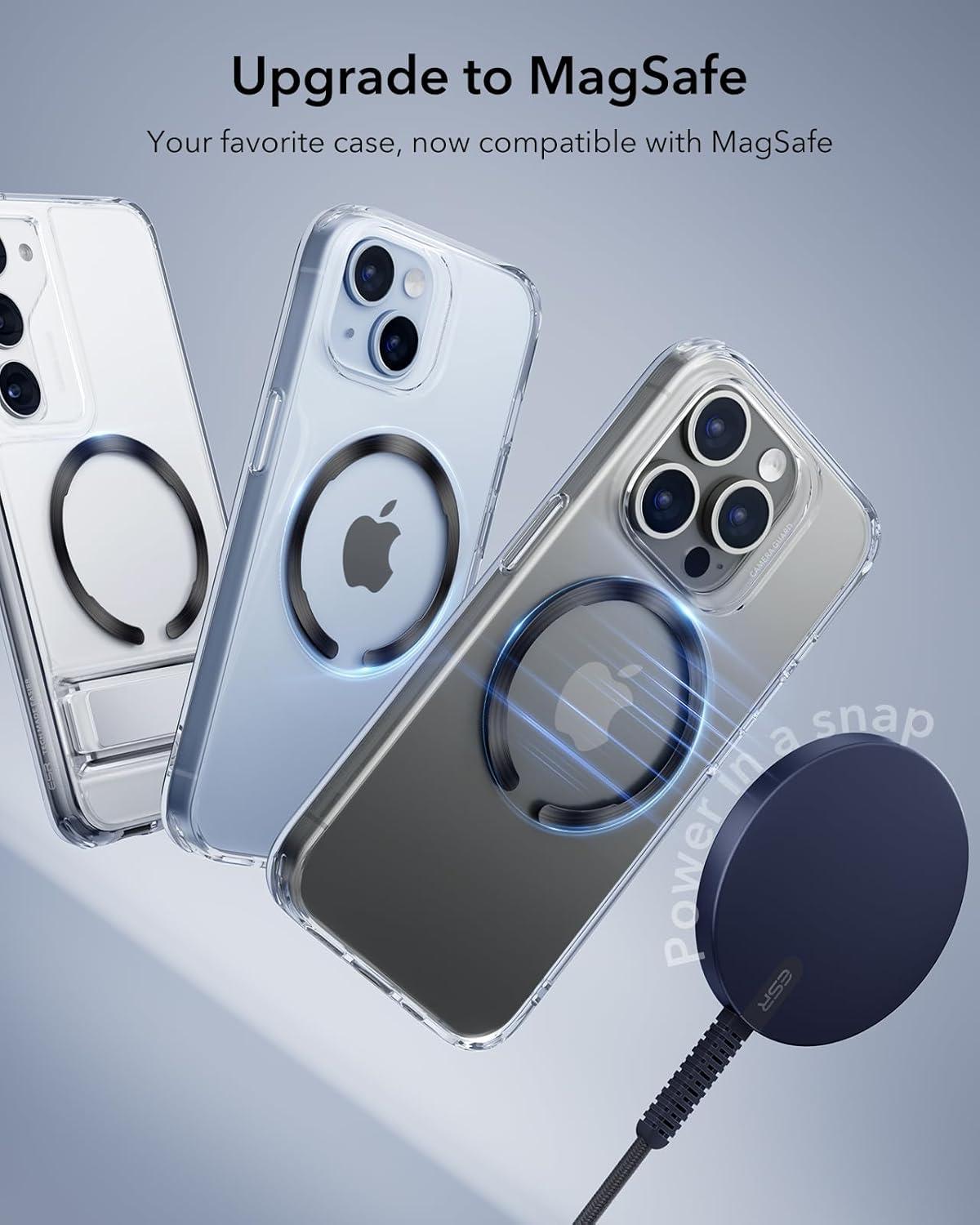 Upgrade to MagSafe: make your standard case compatible with MagSafe for fast and easy magnetic wireless charging; only compatible with PC or TPU cases without a fingerprint-resistant coating. ❌ The MagSafe ring is made of Metal! NOT MAGNET.