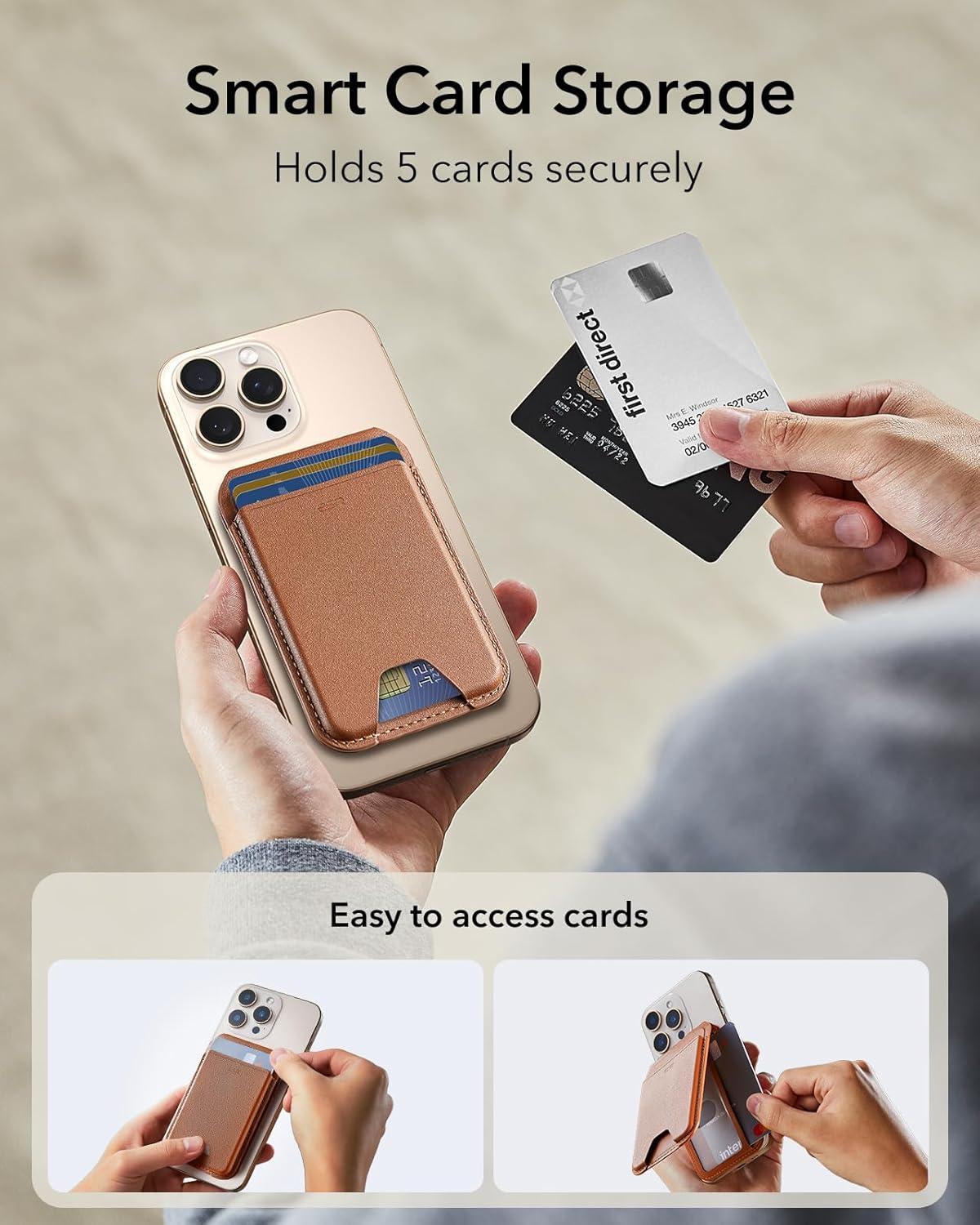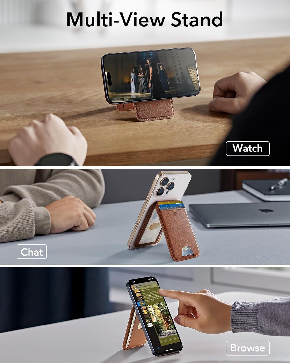 ESR for MagSafe Wallet Stand w Grip, RFID Blocking w MagSafe Ring, 5 Card Holder for Phone Case, Magnetic Wallet for iPhone 17/16/15/14/13/12(Not for Mini), Selected Samsung, Adjustable Stand, Black(A-Brown-5 Cards)