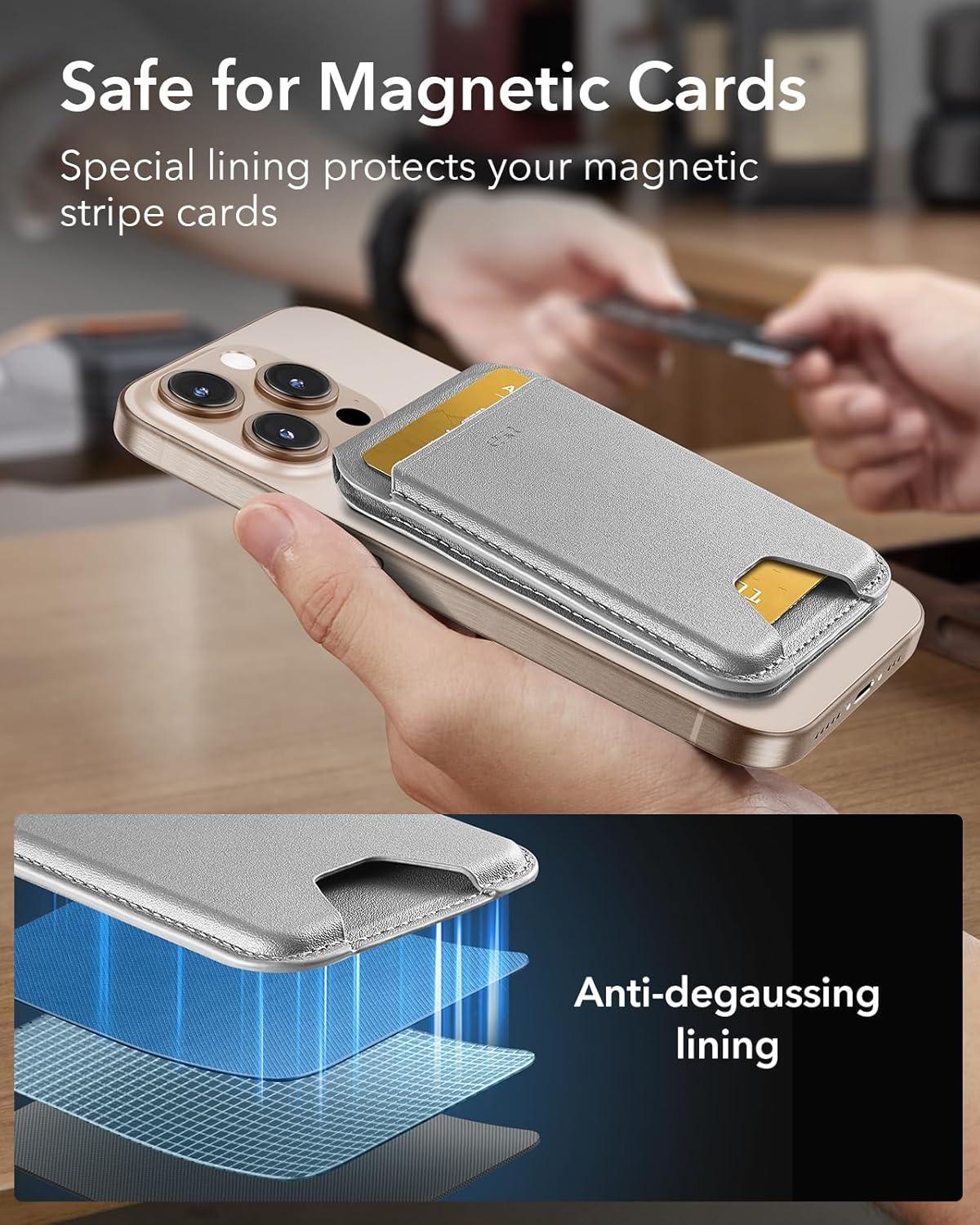 Upgraded Stronger Magnetic Lock: with 3,200 g of holding force (with ESR magnetic cases), it's 275% stronger than the official magnetic wallet, ensuring a secure attachment for your wallet stand; not compatible with Find My