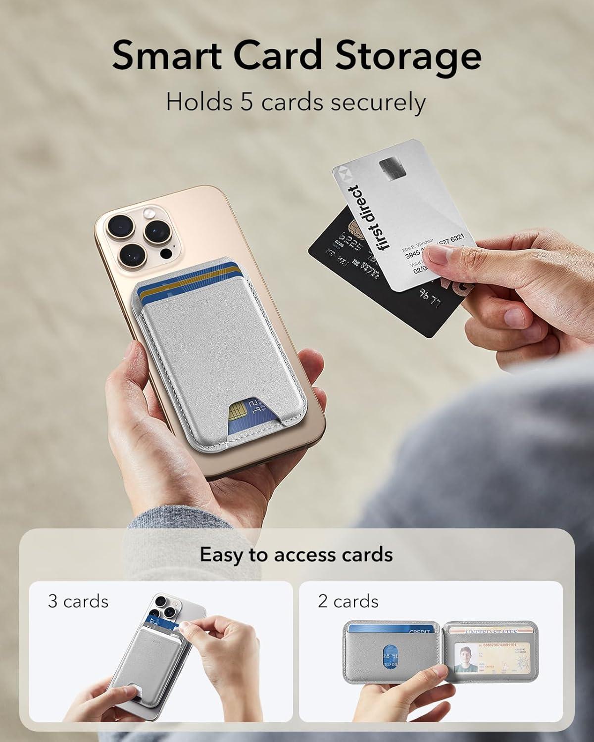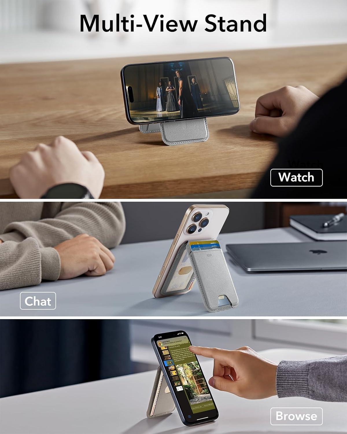 ESR for MagSafe Wallet Stand w Grip, RFID Blocking w MagSafe Ring, 5 Card Holder for Phone Case, Magnetic Wallet for iPhone 17/16/15/14/13/12(Not for Mini), Selected Samsung, Adjustable Stand, Black(A-Grey-5 Cards)