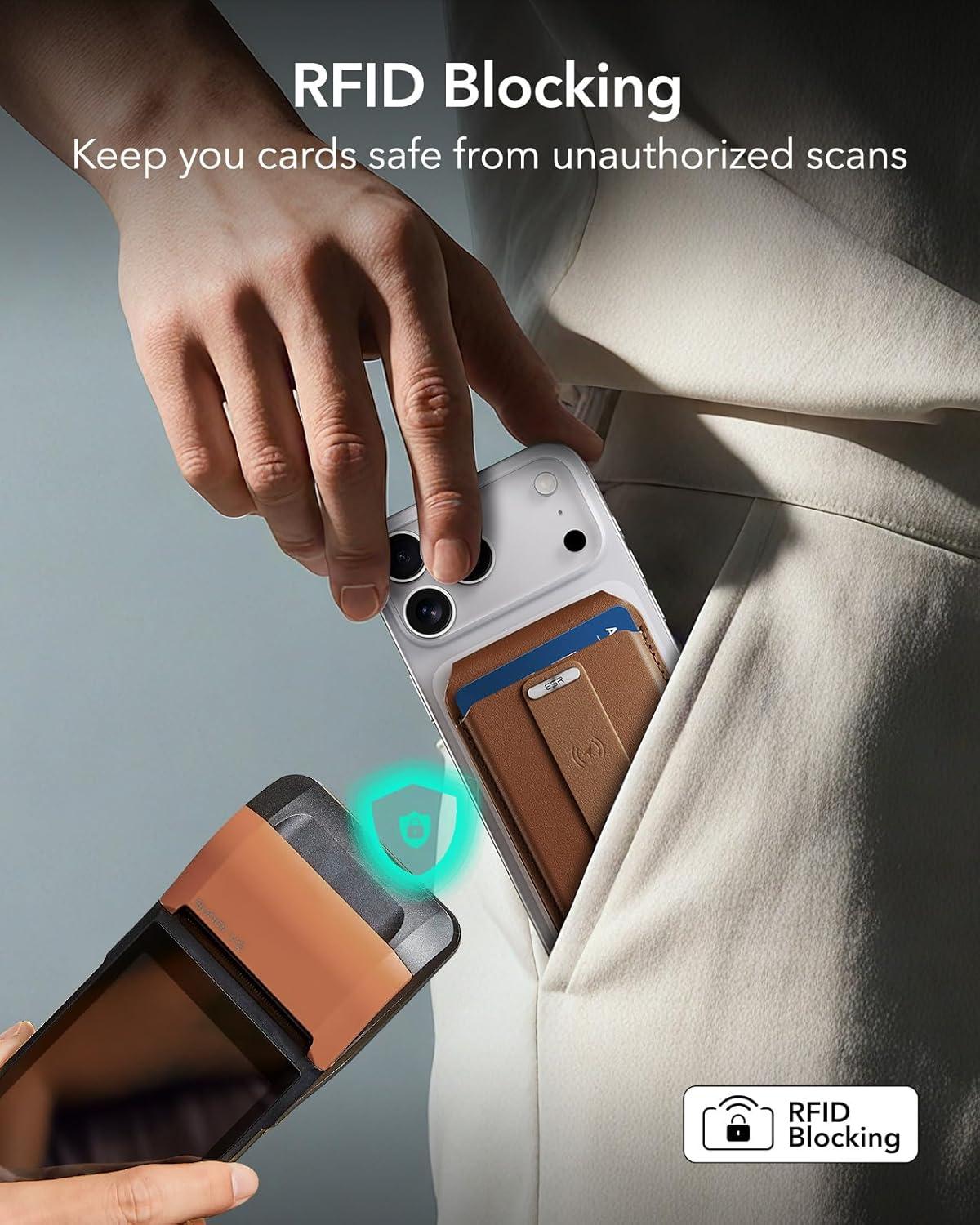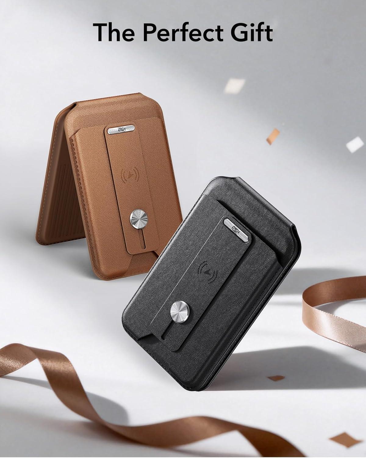 ESR Geo for Magsafe Wallet with Full Find My Functionality,5 Card-Holder, RFID Blocking, Magnetic Wallet for iPhone 17/16/15/14/13/12 Series, with Adjustable Stand, Brown(A-Stand & Grip: Brown)