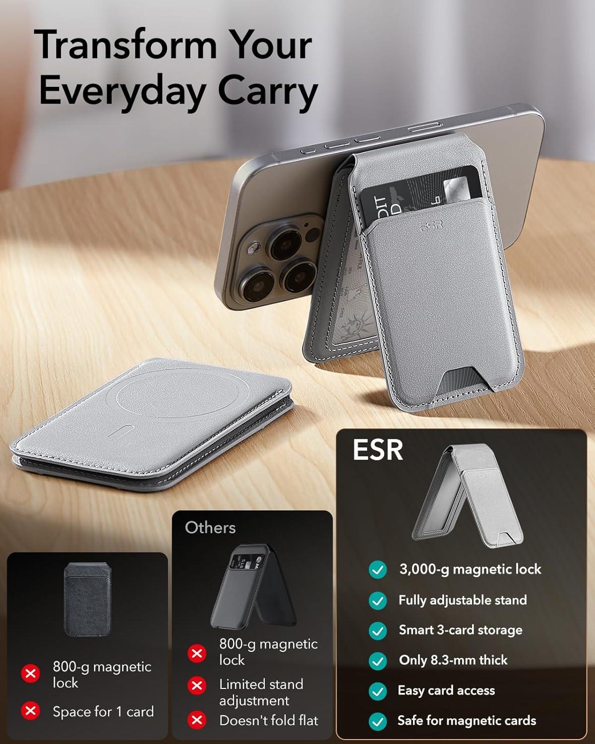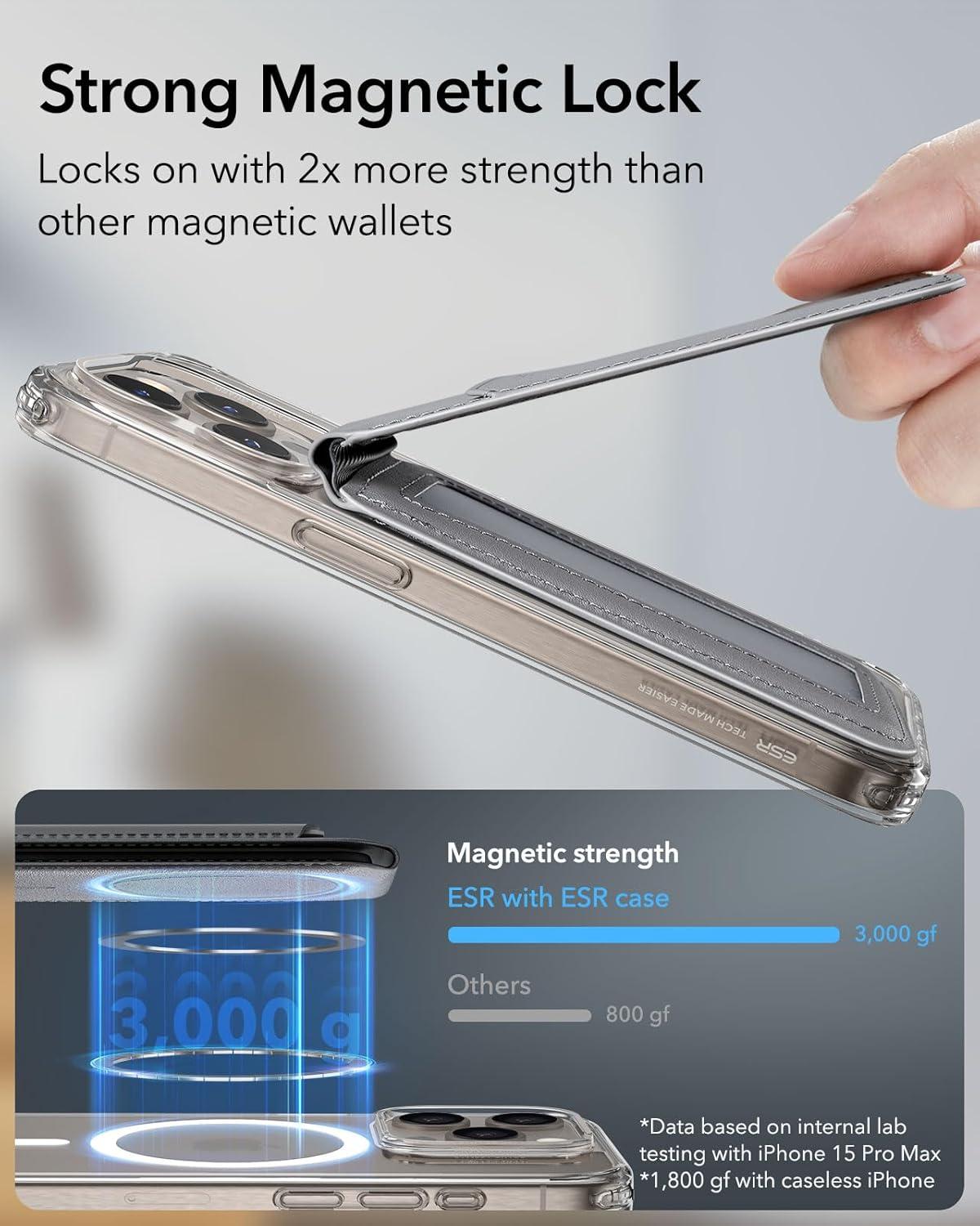 Works with Apple Find My: ESR Geo Wallet wiith Apple-certified Find My functionality(iOS 14.5 Above Only), just like an AirTag. Track its real-time location, play a sound, and get left-behind notifications