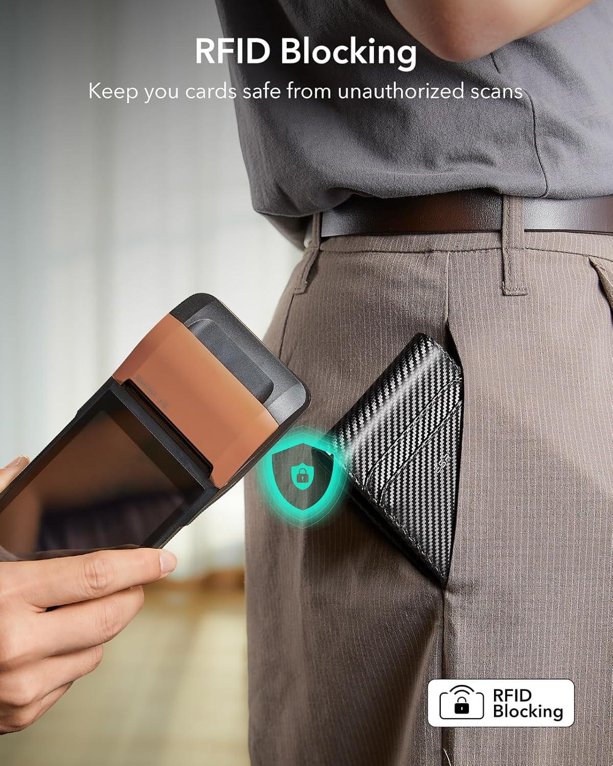 RFID Blocking: protects your cards from unauthorized scans, safeguarding your personal and financial information