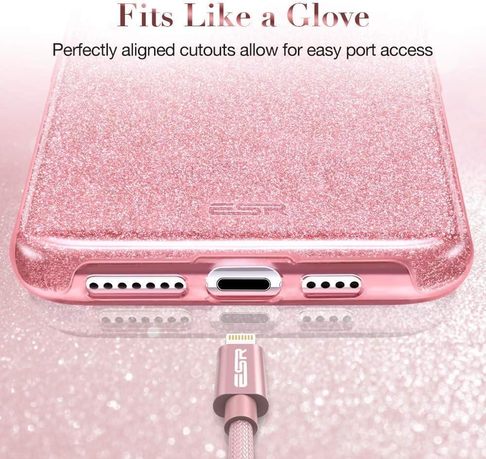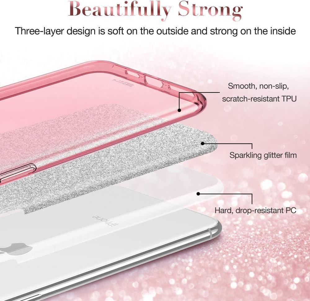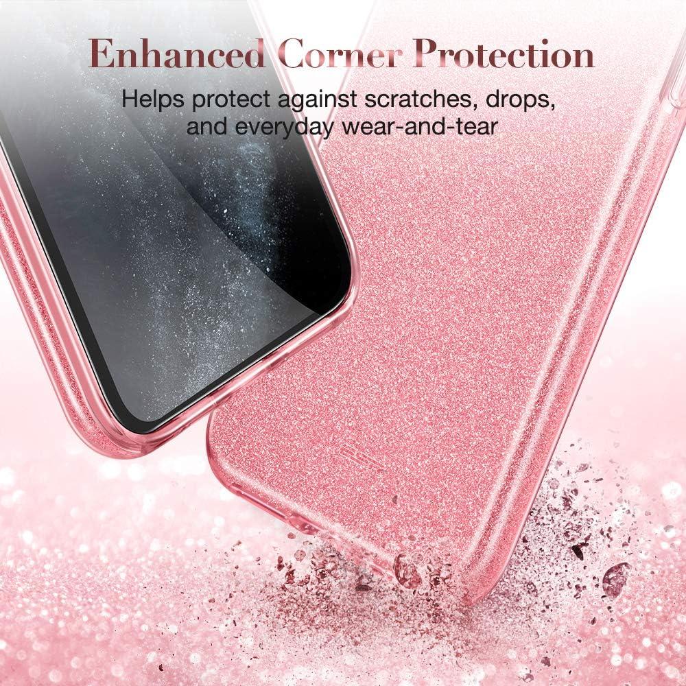 ESR Glitter Case Compatible for iPhone 5.8″ Case, Glitter Sparkle Bling Case [Three Layer] for Women [Supports Wireless Charging] for iPhone 11 5.8″ (2019), Rose Gold