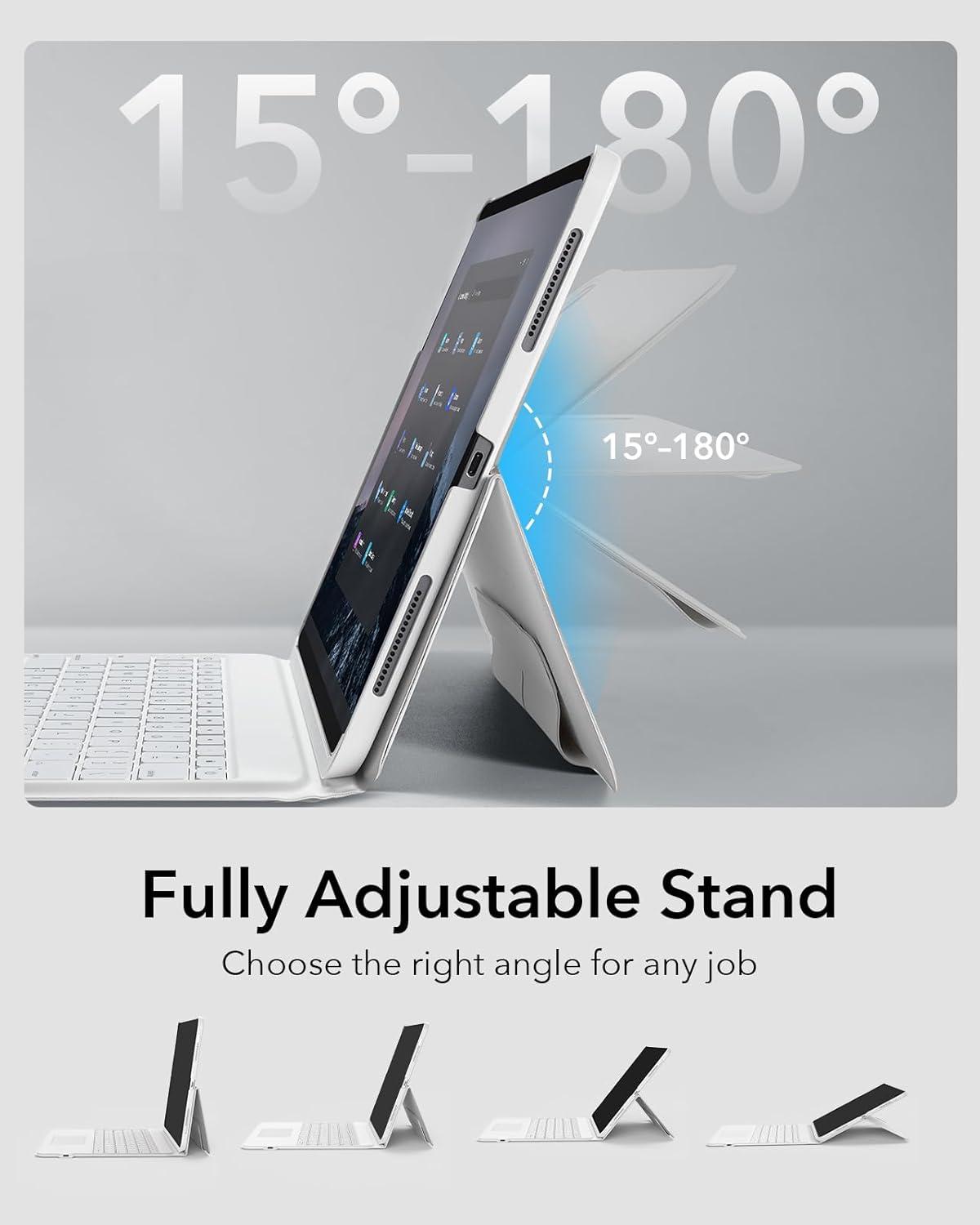 ESR iPad Air 13 Inch Case Keyboard (M3/M2, 2025/2024), Keyboard Case with Trackpad, Magnetic Detachable Keyboard with Backlit Keys, Fully Adjustable Portrait/Landscape Stand, Ascend Series, Pink(Pro 12.9 White)