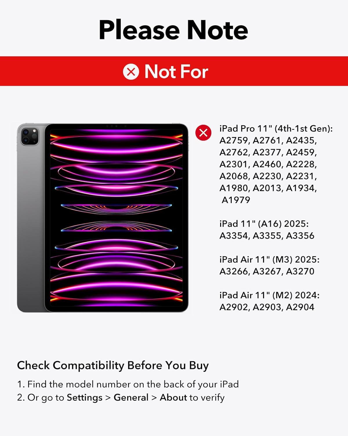 Compatibility: only for iPad Pro 11″ (M5/M4, 2025/2024); Model: A2836,A2837,A3006